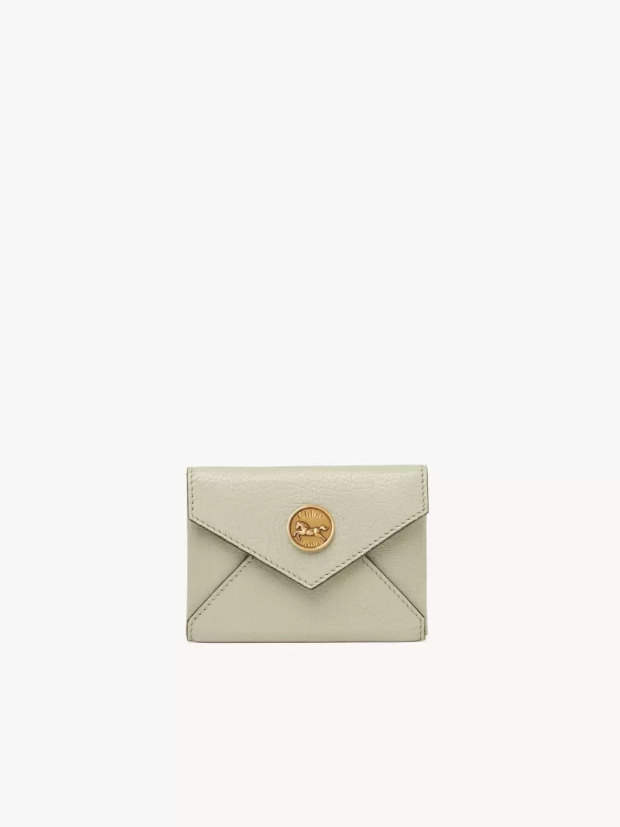 Crafted from grained goatskin, this Envelope card holder pairs a slim, elongated design with a practical snap button closure.