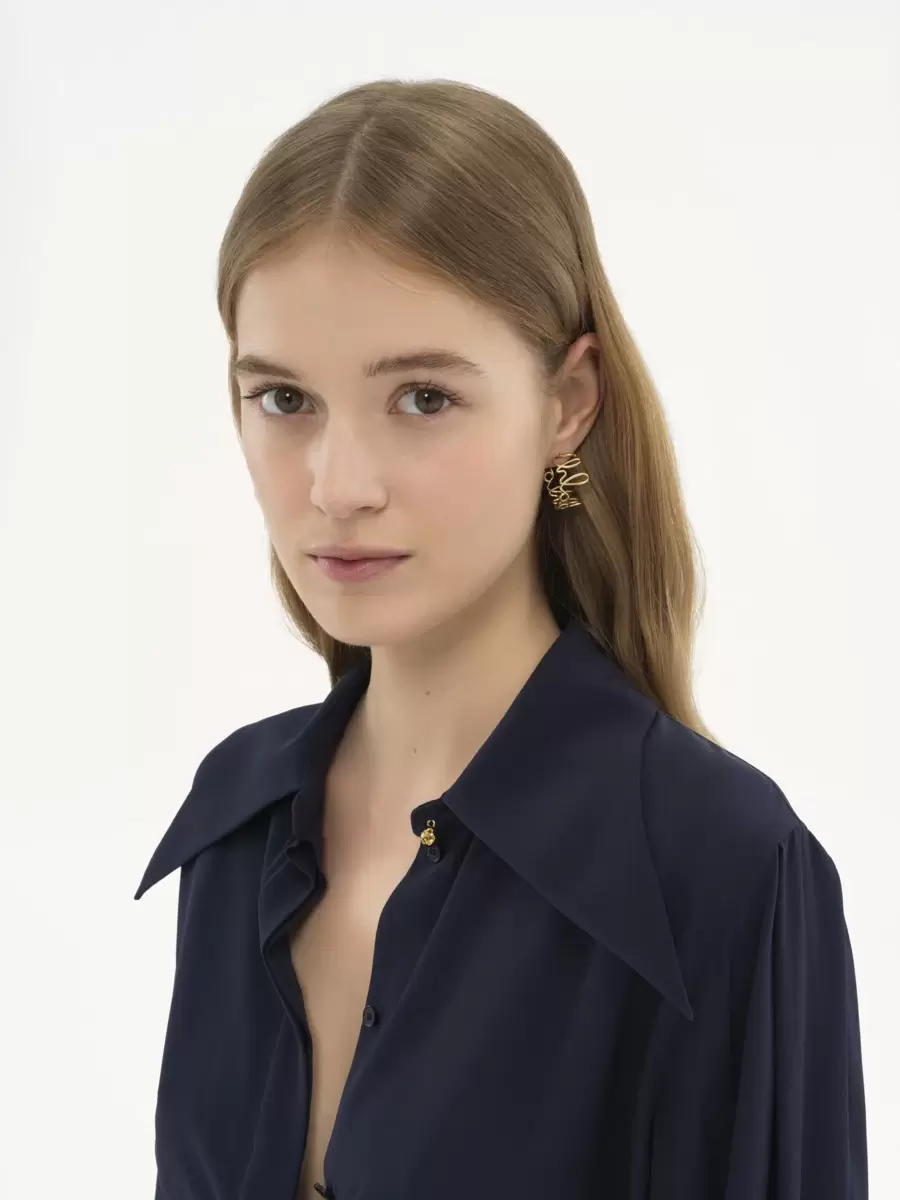 Chloé Iconic hoop earrings in vintage gold brass, featuring the Chloé signature inspired by a chain belt rooted in the Maison’s heritage. A Chloé logo engraving finishes the hoop silhouette. These earrings can be worn in combination with other pieces from the Maison’s jewelry collection.