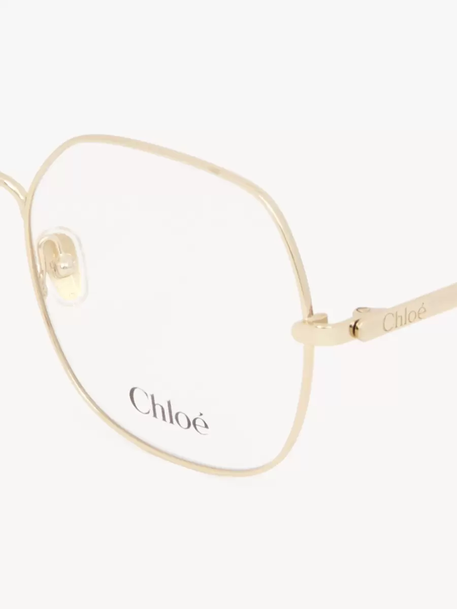Square eyeglasses in gold metal