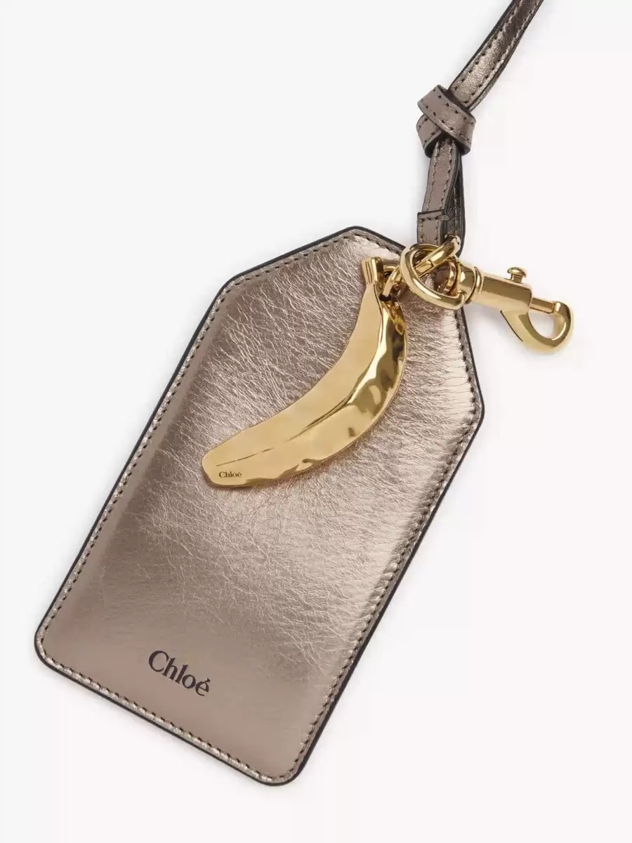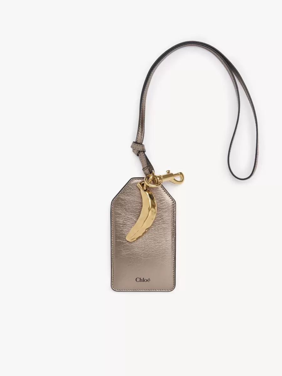 Crafted from metallized calfskin, this Chloé Symbols Banana tag is embellished with a playful vintage brass charm in a nod to the Maison’s Spring 2001 collection. The tag comes with four card slots, a hook and a tie fastening.