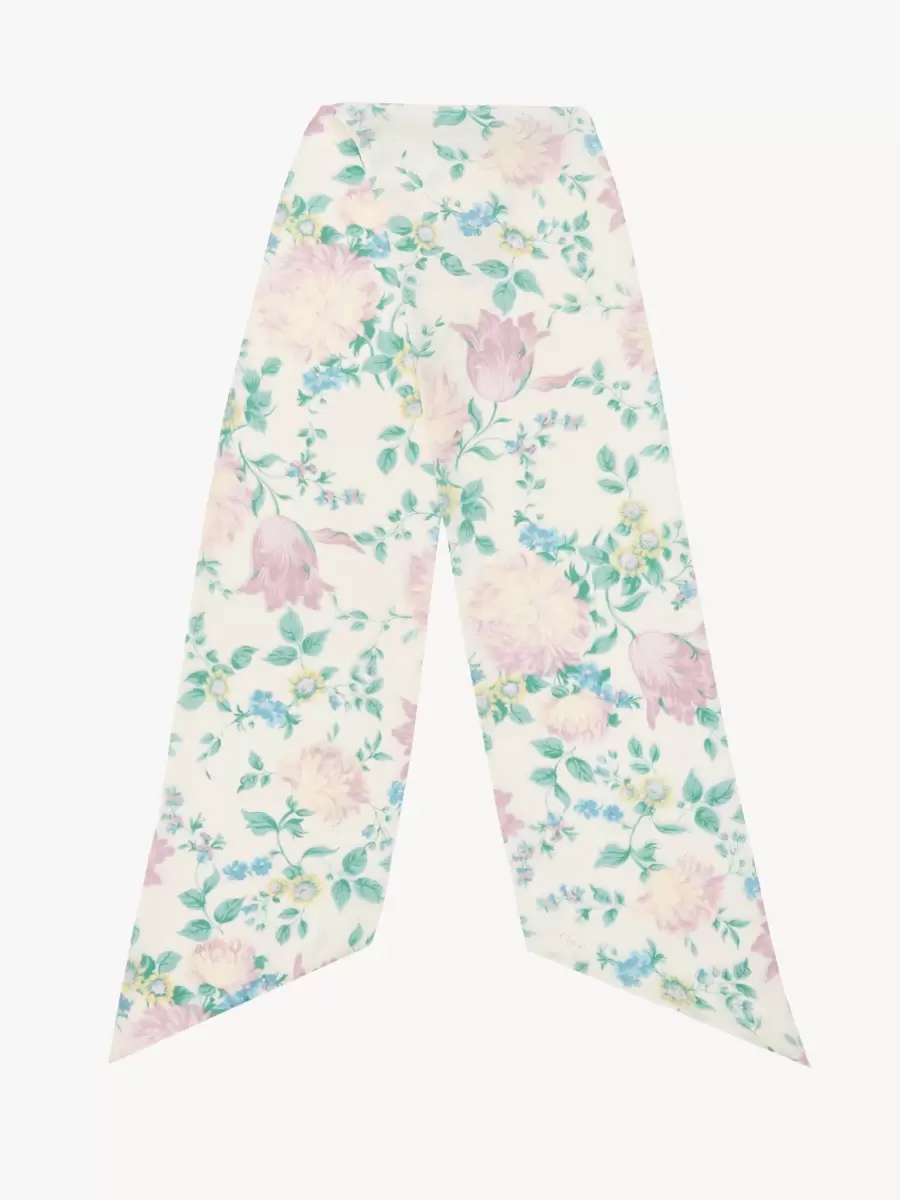 Printed wide bandeau scarf in organic silk charmeuse with a floral motif depicting peonies and leaves, inspired by the Maison’s heritage. This sheer, inkjet-printed scarf is signed with a subtle Chloé logo at the tip.
