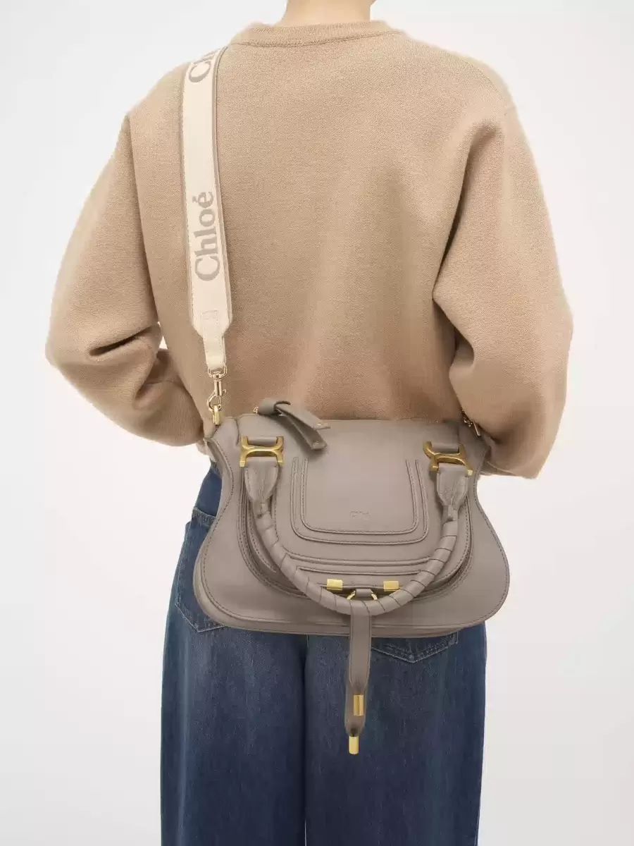 This statement strap is compatible with many Chloé bags, including all small and medium Marcie double carry bags, the Marcie clutch, as well as the Penelope bags.