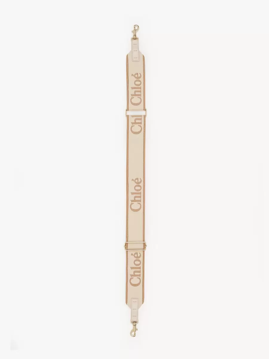 Crafted from canvas, this adjustable strap redesigns the Maison’s signature accessory in a version with an adjustable length. It features Chloé logo embroidery and a metallic hook at each end, which attaches to the Maison’s bags and mini bags for shoulder or cross-body wear.