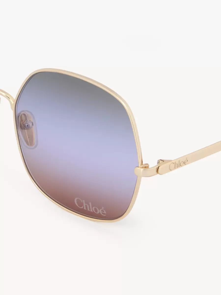 These Aly square sunglasses pair a lightweight graphic frame in shiny gold-tone metal with triple gradient lenses in a palette of green, blue and rust. The Chloé logo finishes the left lens.