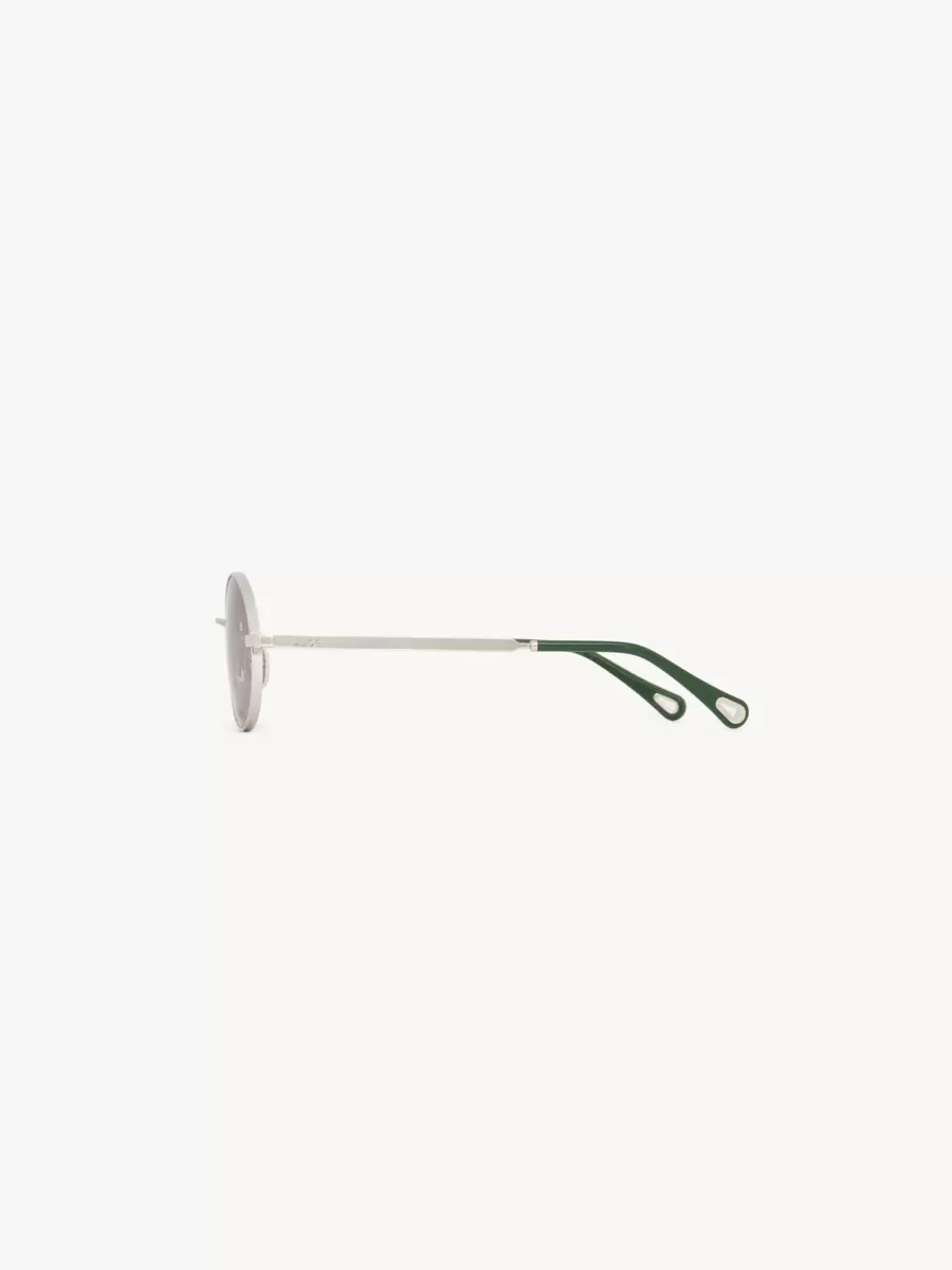 These small Aly oval sunglasses pair a lightweight frame in shiny silver-tone metal with double gradient green to violet lenses. The Chloé logo finishes the left lens and temples.