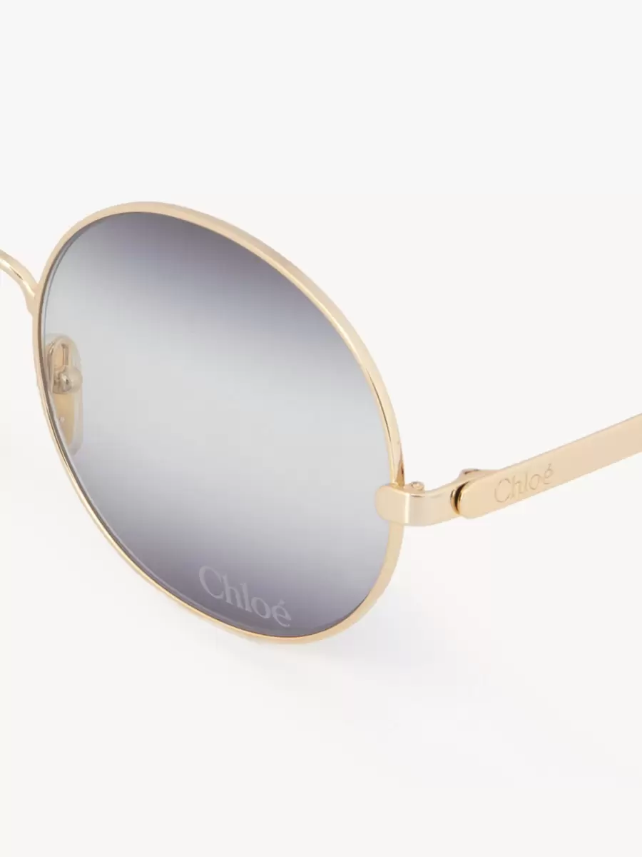 These Aly round sunglasses pair a lightweight graphic frame in shiny gold-tone metal with triple gradient lenses in a palette of black, light gray and gray. The Chloé logo finishes the left lens.