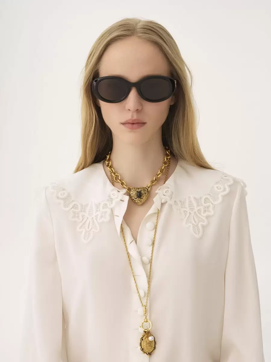 Drop-shaped openings at the temple tips make these sunglasses compatible with Chloé’s eyewear jewelry.