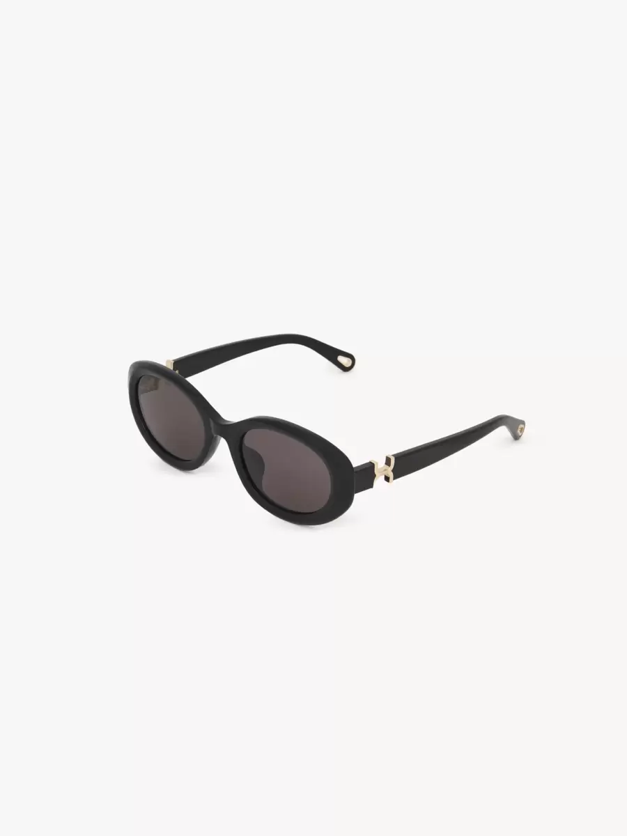 Made from lower-impact acetate, the glossy black frame is combined with solid brown lenses in bio-based nylon. The Chloé logo details the left temple, while drop-shaped openings at the temple tips make these women’s sunglasses compatible with Chloé’s eyewear jewelry.
