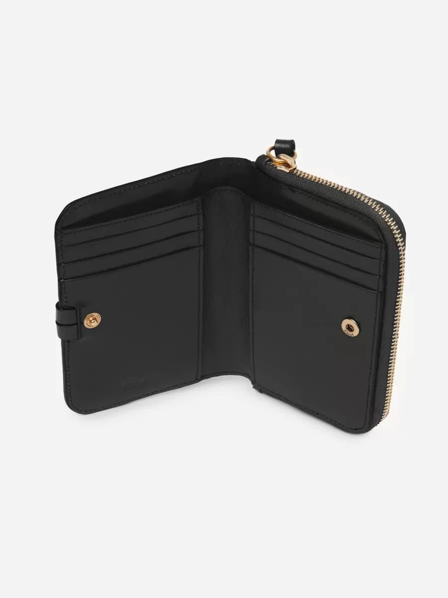 The Maison’s iconic Alphabet line includes this bifold wallet in shiny calfskin, featuring a zipped compartment and multiple card slots.