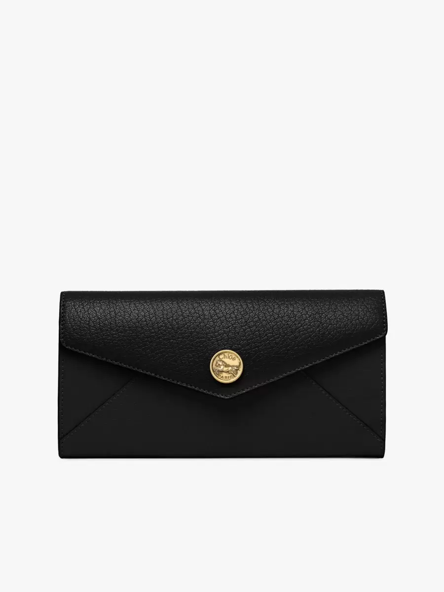 Crafted from grained goatskin, this Envelope long wallet with flap features two main compartments, 12 card slots and a zipped outer pocket.