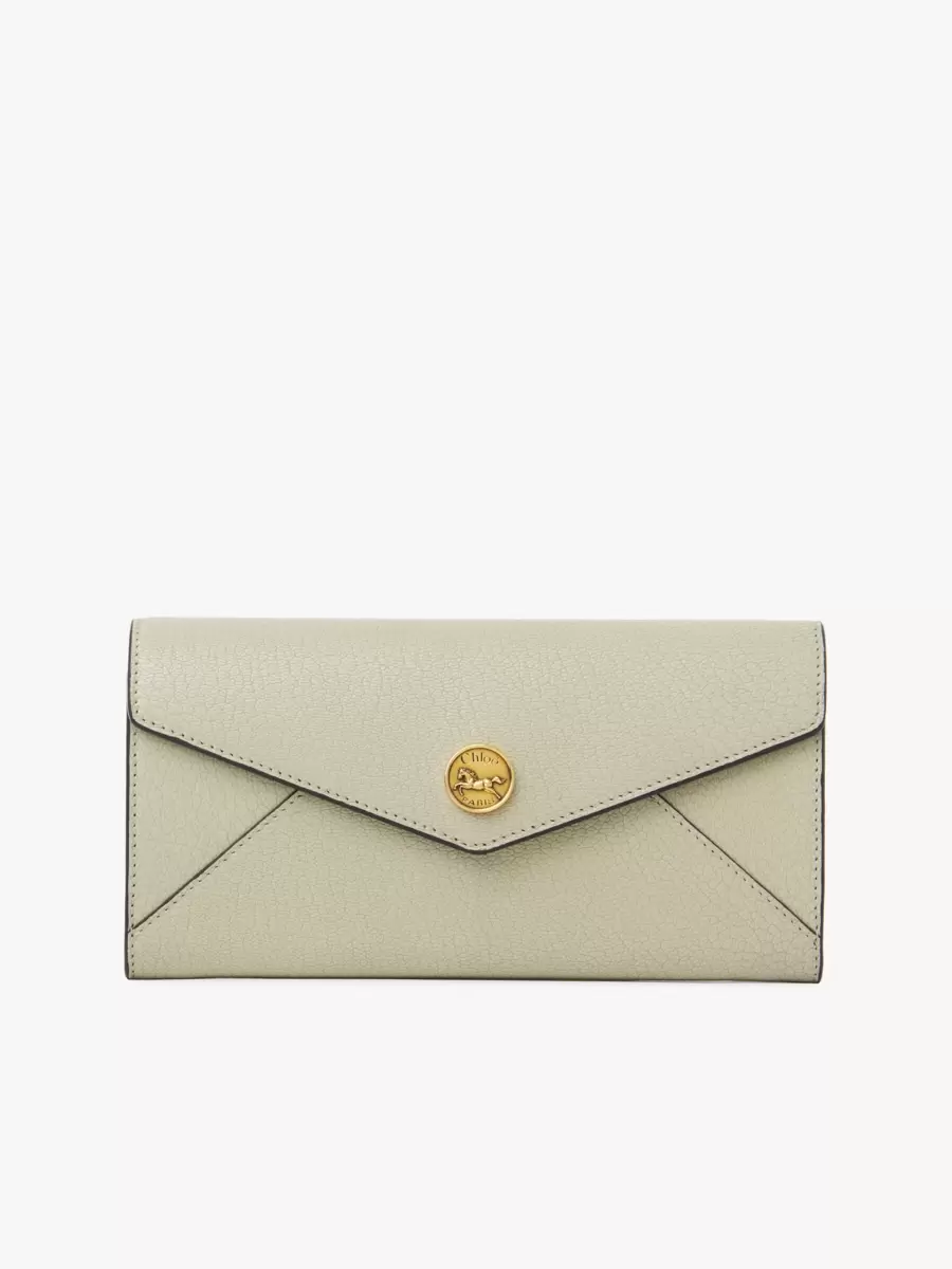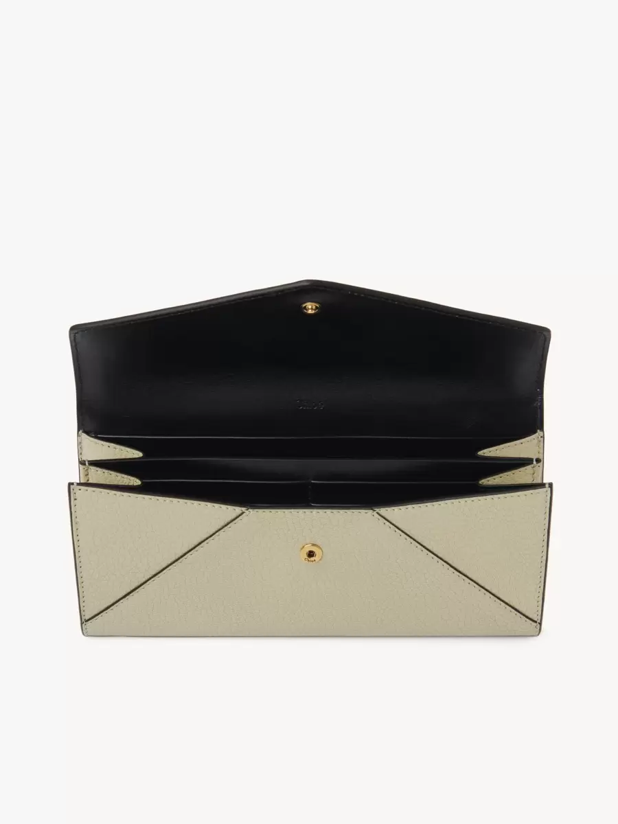 Envelope long wallet with flap in grained leather