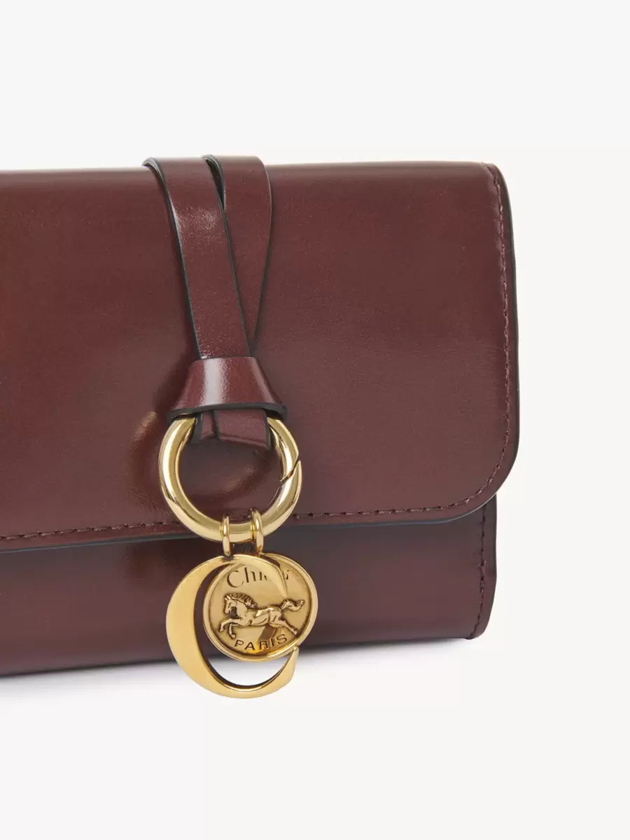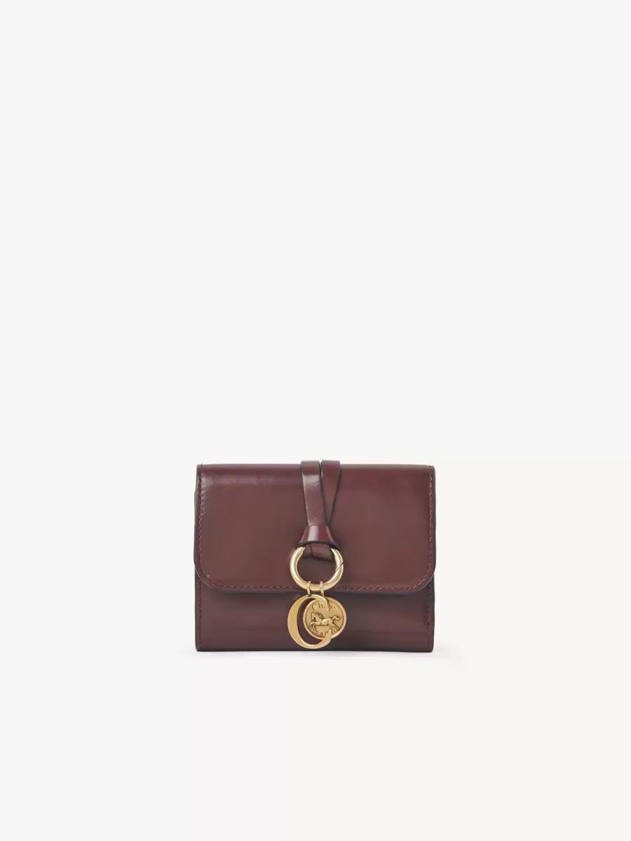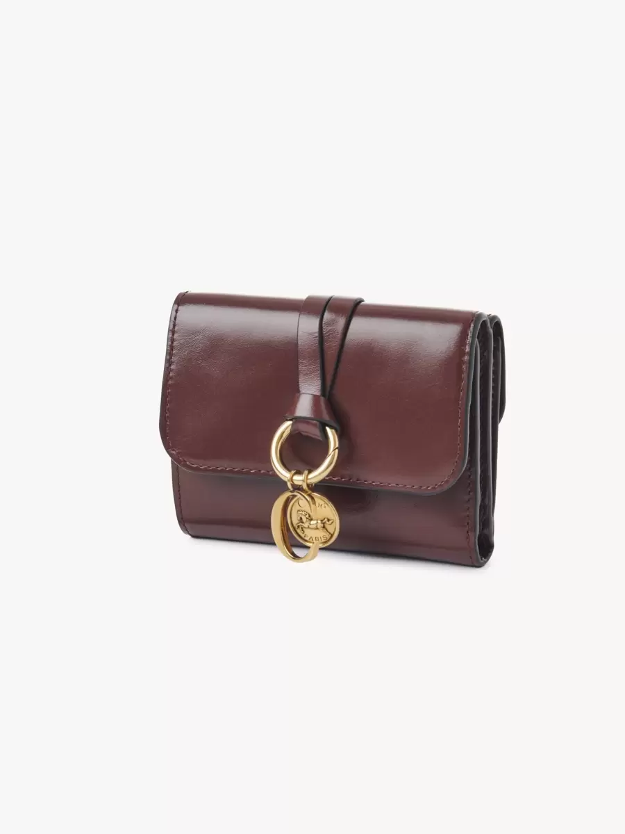 The Maison’s iconic Alphabet line includes this small tri-fold wallet in shiny calfskin. Designed to hold the essentials, it features multiple card slots and one flat pocket. The front is finished with a knotted link and Chloé’s signature golden initial and Horse Medal charms.