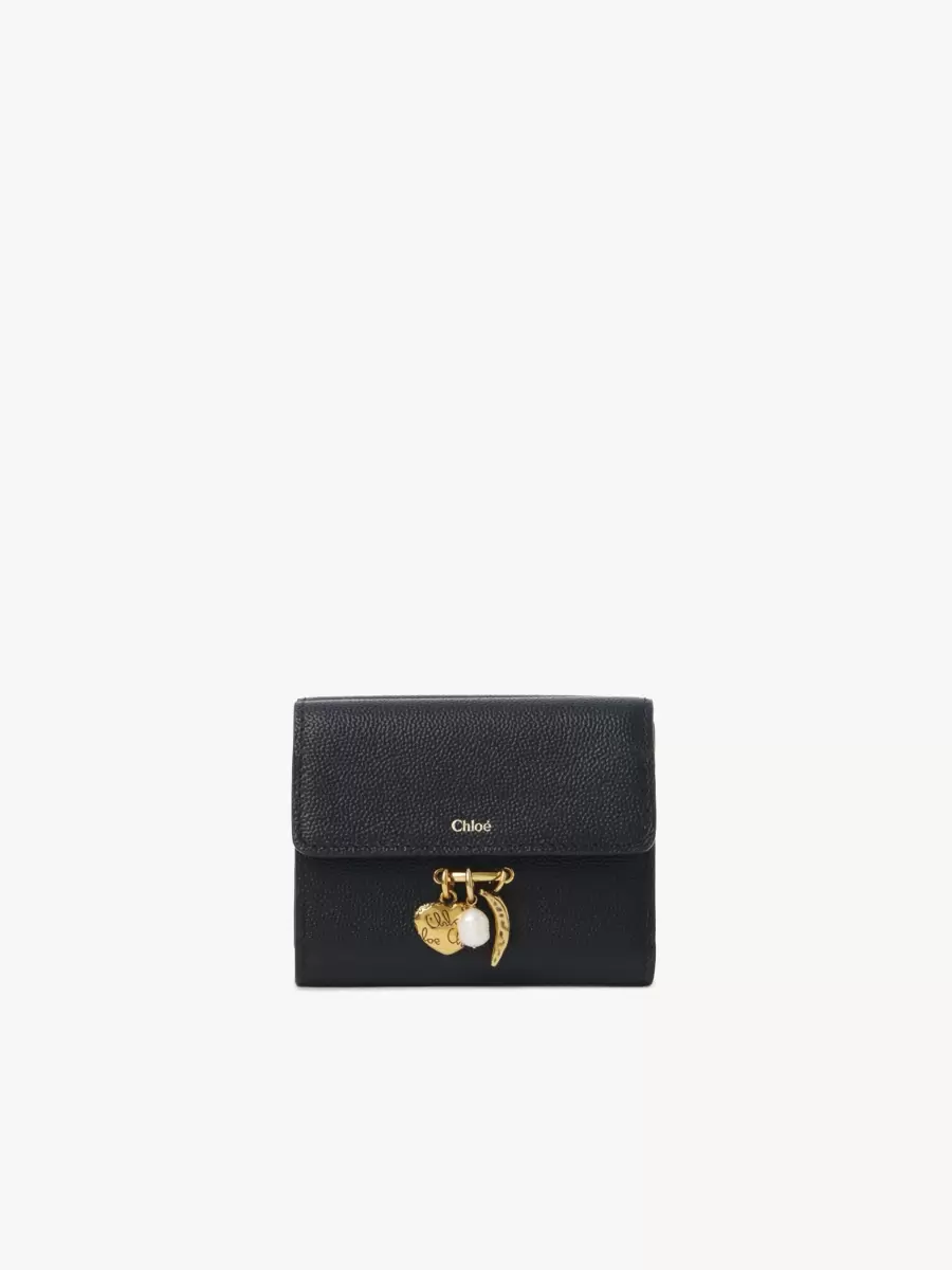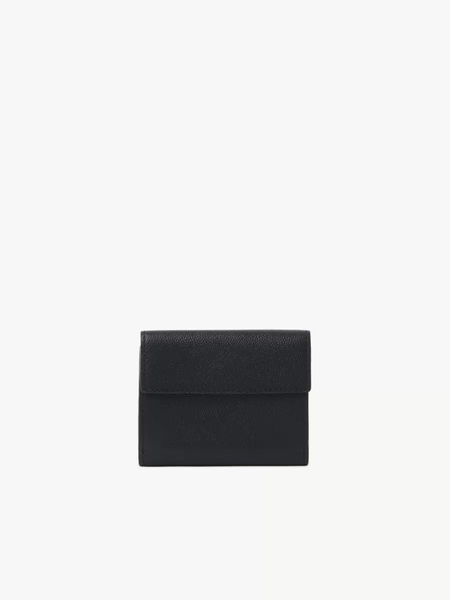 Crafted from shiny grained calfskin, this small Chloé Charms tri-fold wallet has one bill compartment and multiple card slots.