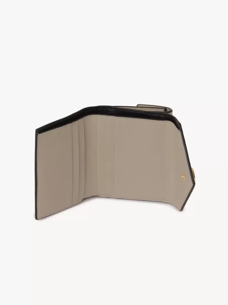 Crafted from grained goatskin, the small Envelope tri-fold features a bill compartment, a coin pocket and six card slots.