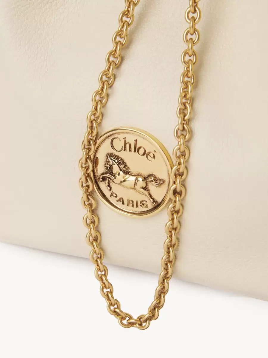 The small Bracelet backpack is crafted from grained buffalo leather. The supple silhouette is embellished with an oversized bracelet handle, a drawstring chain and the Maison’s signature Horse Medal.