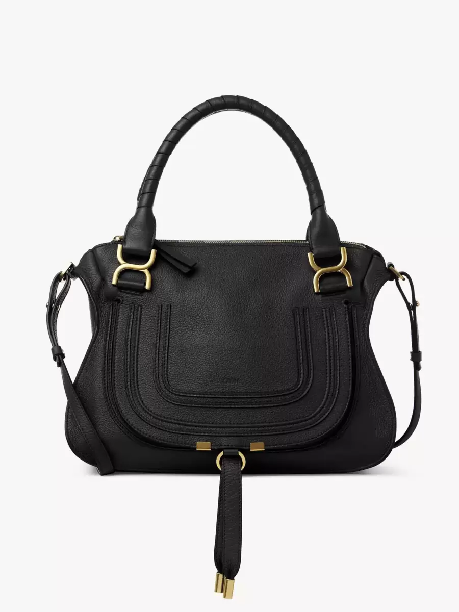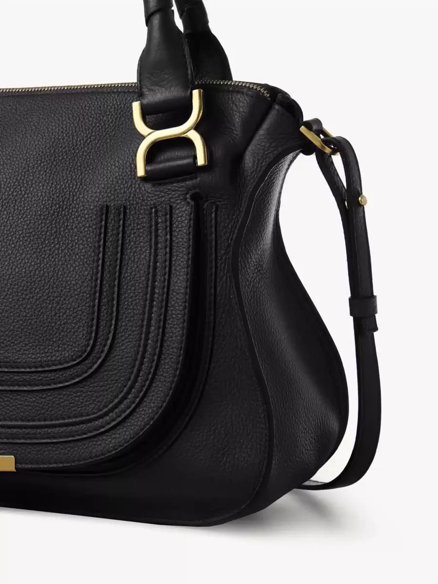This iconic Marcie double carry bag is a roomy and practical day bag crafted from grained calfskin. Clean lines and a contoured design enhance the slouchy silhouette, while hand-wrapped leather handles add crafty detail. The detachable strap allows for casual, cross-body styling.