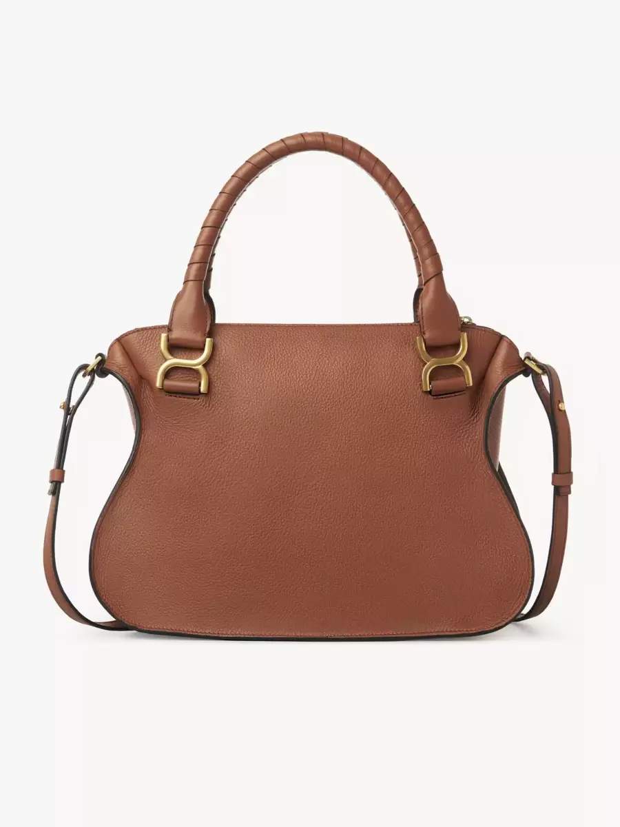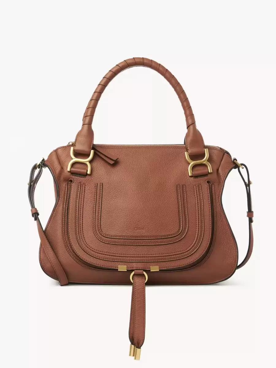 This iconic Marcie double carry bag is a roomy and practical day bag crafted from grained calfskin. Clean lines and a contoured design enhance the slouchy silhouette, while hand-wrapped leather handles add crafty detail. The detachable strap allows for casual, cross-body styling.