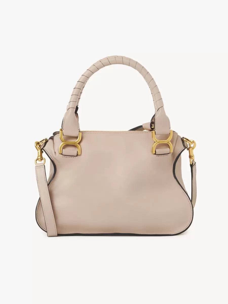 Crafted from shiny calfskin, this small Marcie purse has a slouchy silhouette with feminine lines. It is finished with saddle stitching, iconic gold-tone buckles and hand-wrapped double handles. The line’s leather tassels secure the flap.