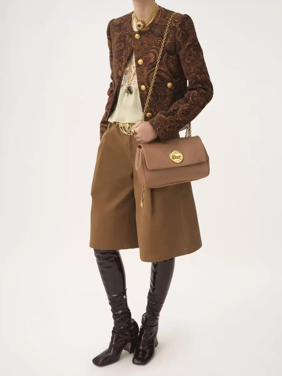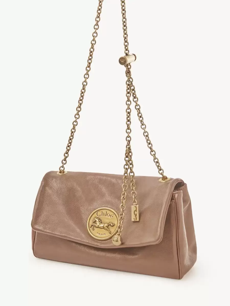Crafted from grained buffalo leather, this Chloé Heritage shoulder bag is inspired by the Maison’s codes. The supple, curved construction is embellished with gold-tone hardware, combining a signature Horse Medal closure with dangling charms.