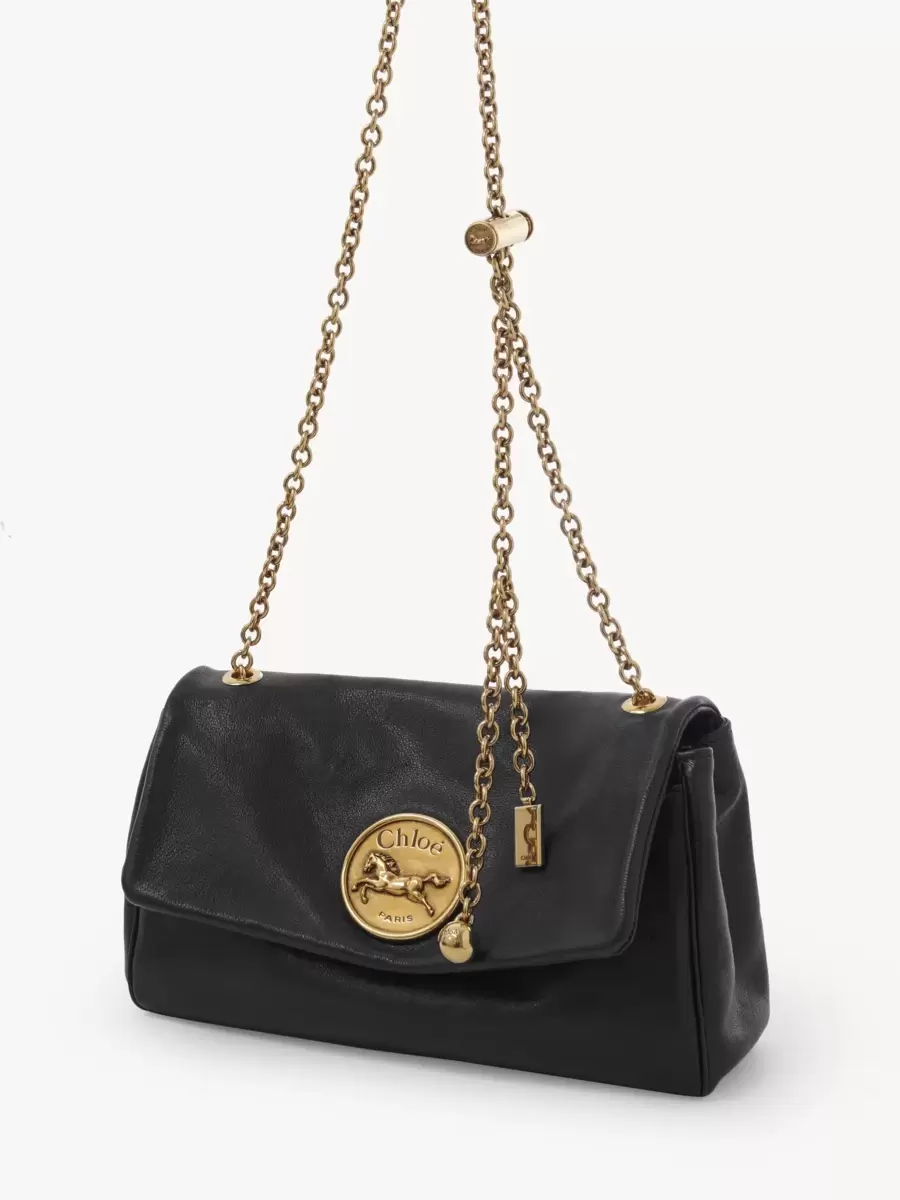 Crafted from grained buffalo leather, this Chloé Heritage shoulder bag is inspired by the Maison’s codes. The supple, curved construction is embellished with gold-tone hardware, combining a signature Horse Medal closure with dangling charms.