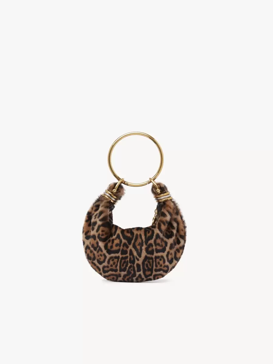 Mini Bracelet Hobo bag in leopard-print shearling