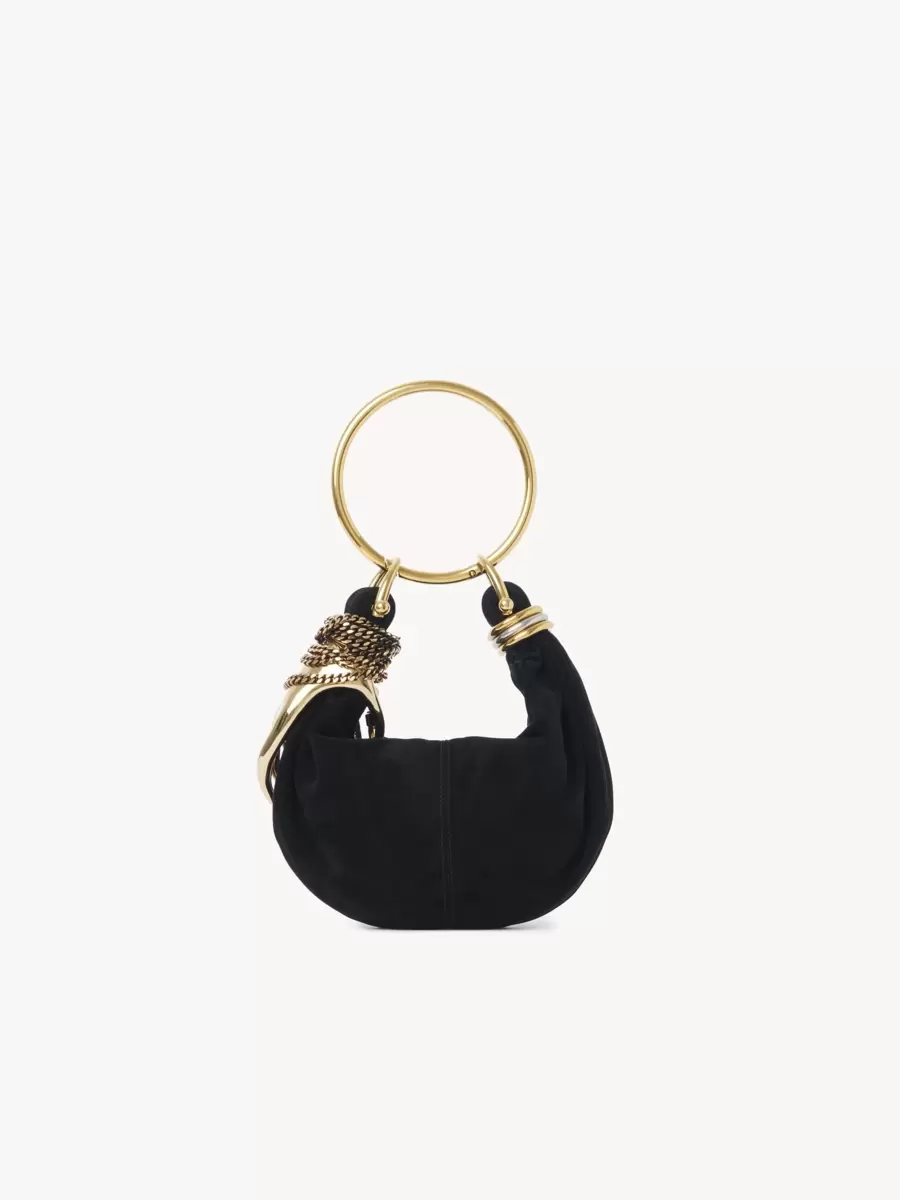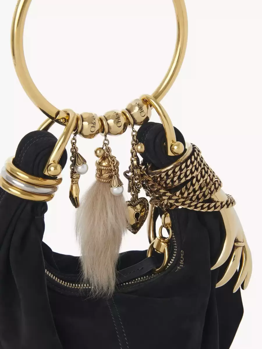 Mini Bracelet Hobo bag in suede goatskin with hand ornament