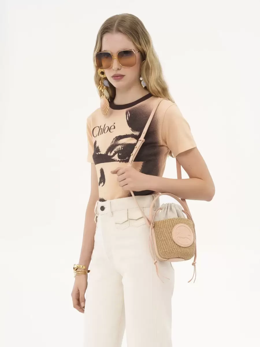 This mini Horse Medal basket bag is handwoven from fair-trade paper by independent craftswomen in Kenya. The rounded compartment is finished with a signature calfskin medal, featuring the Chloé logo and an embossed image of a galloping horse.