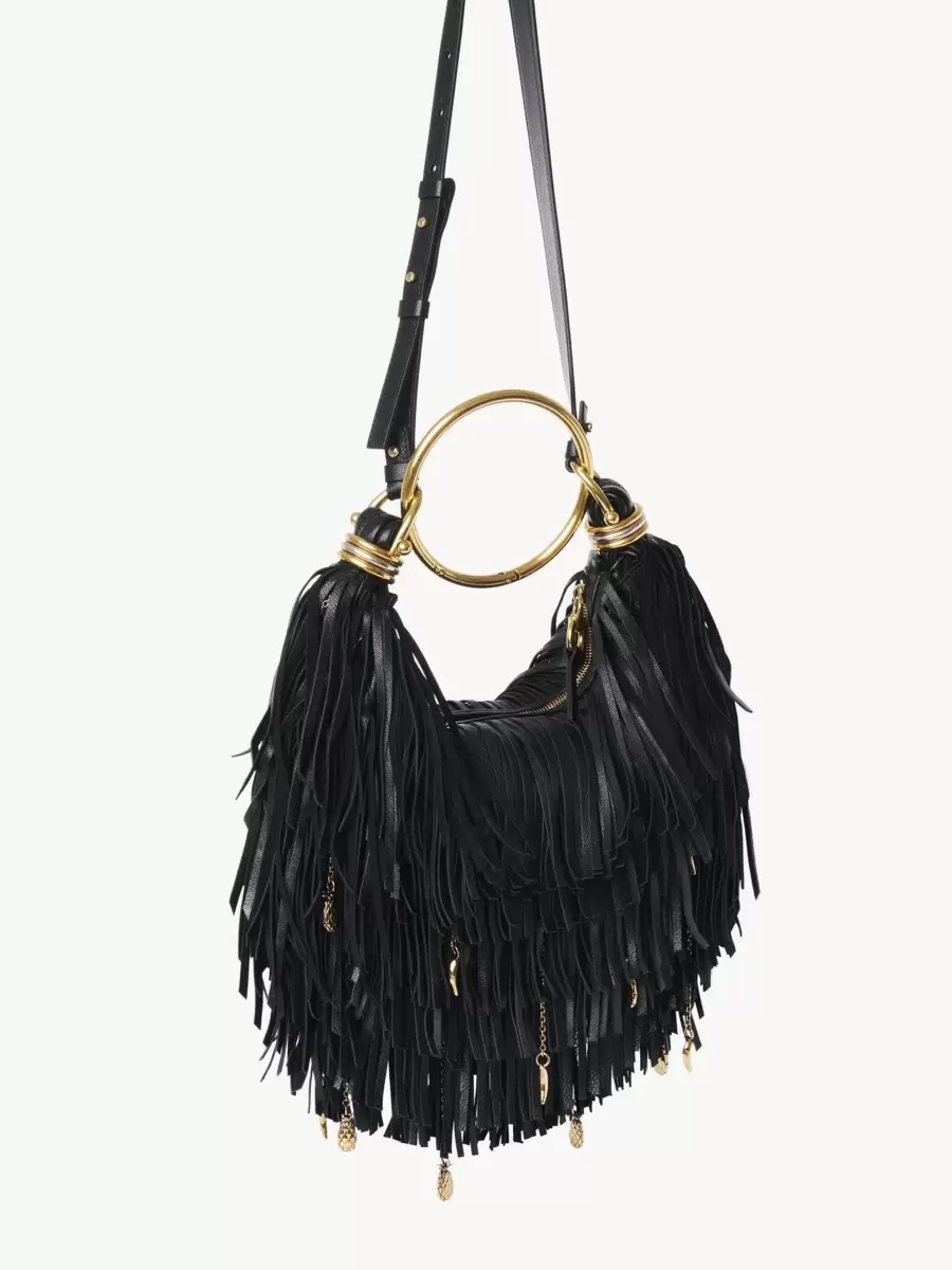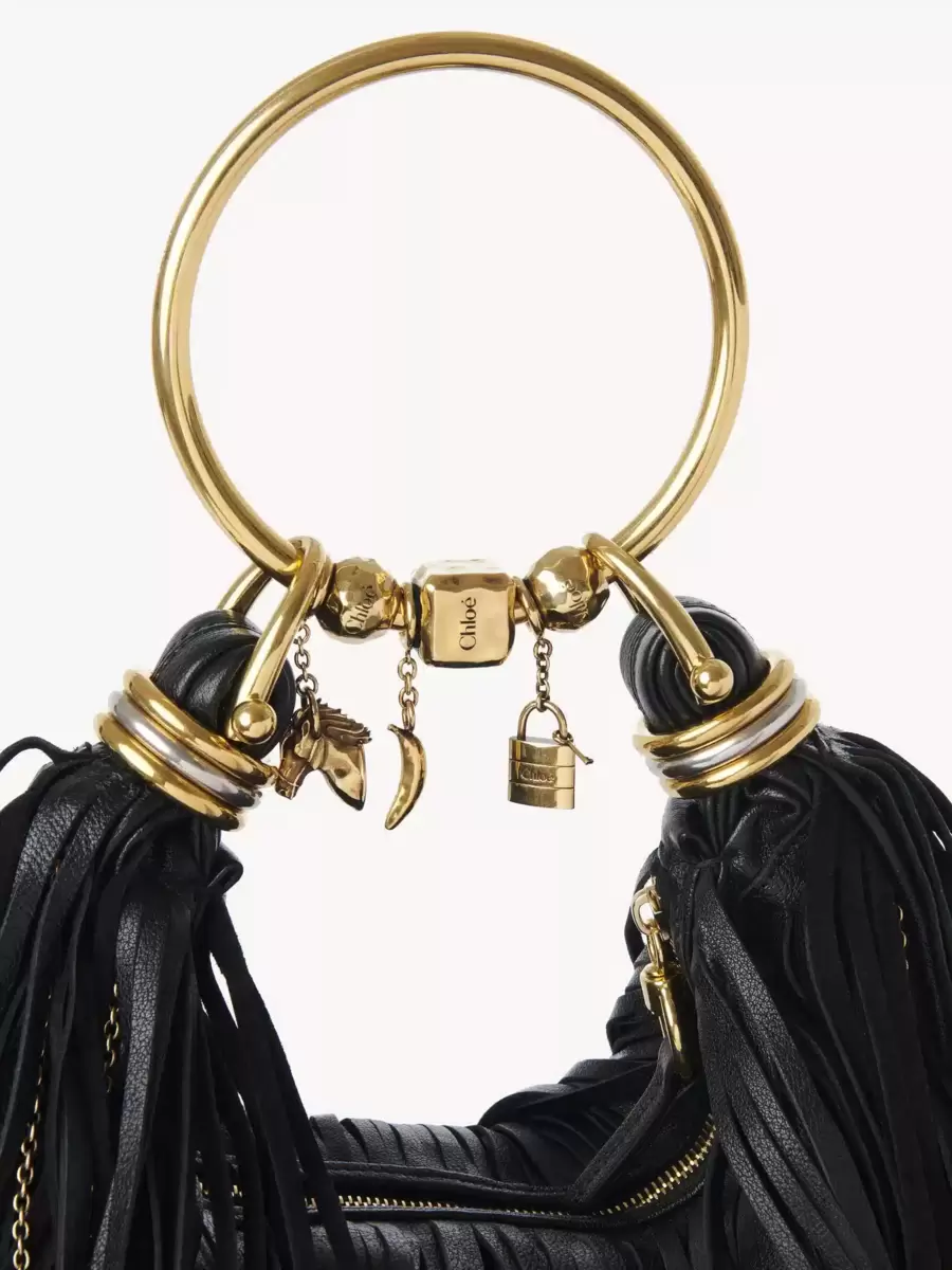 Small Bracelet Hobo bag in fringed buffalo leather with metal ornaments