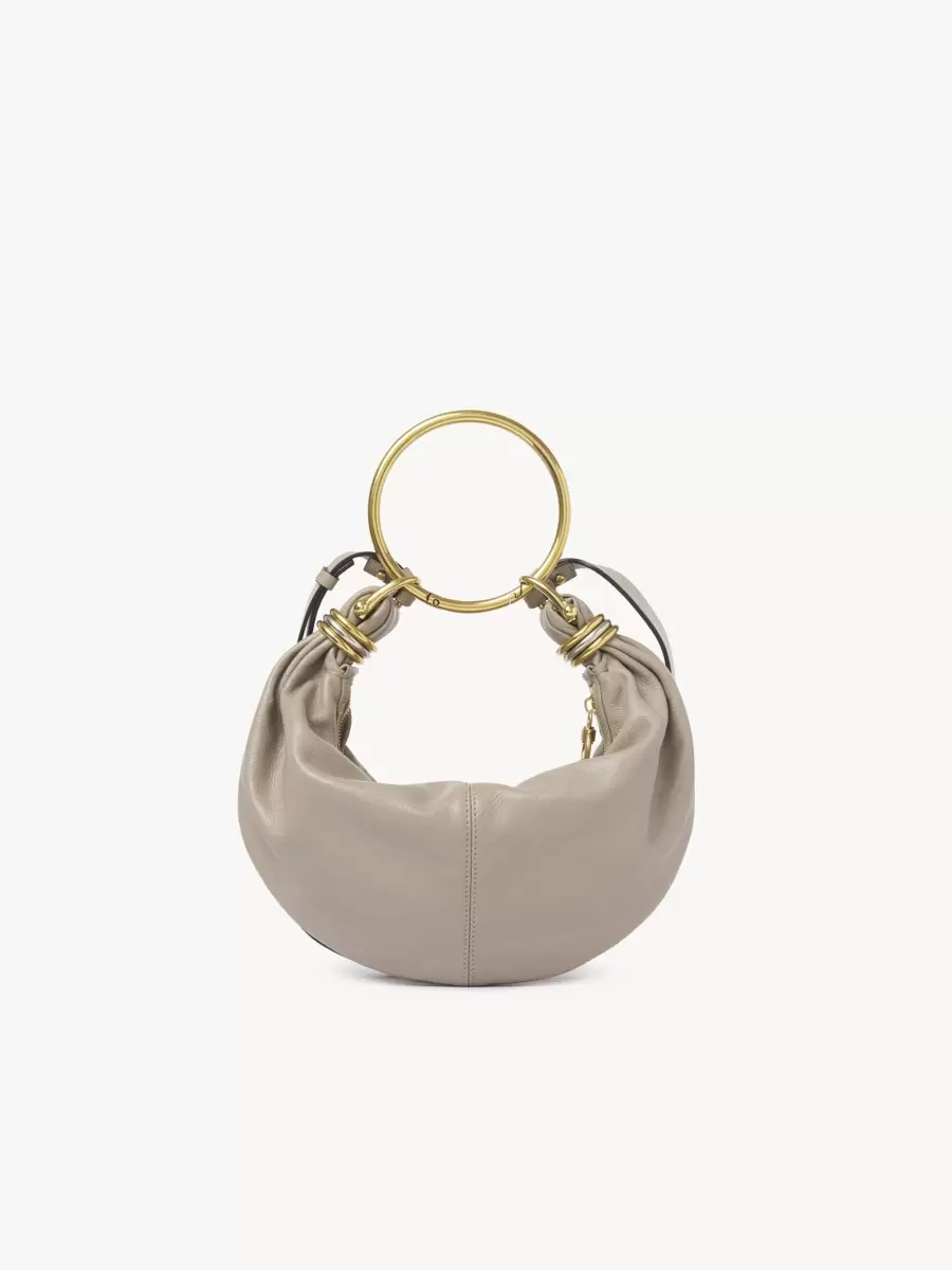Inspired by the Maison’s Archives, this small Bracelet hobo bag is crafted from shiny grained calfskin. The supple, rounded shape is elevated by a bracelet handle and stacked two-toned rings at the ends.