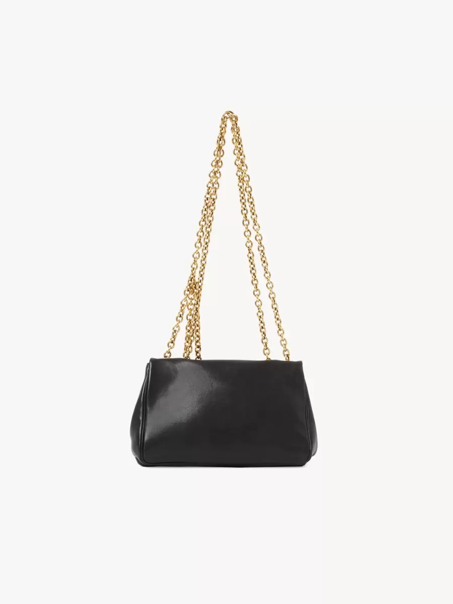 Carry in the hand, on the shoulder or crossbody with the chain strap.
