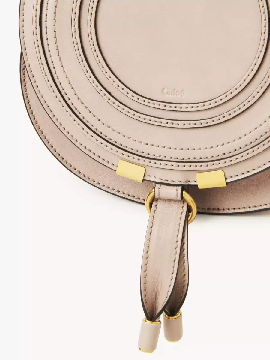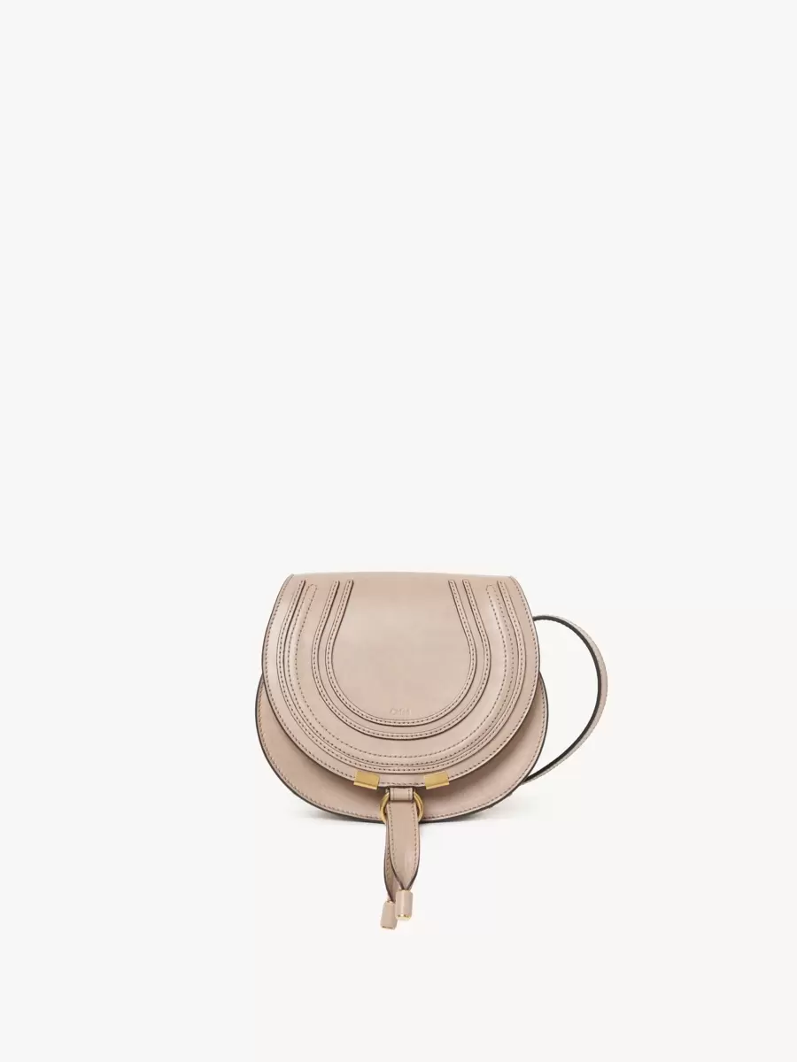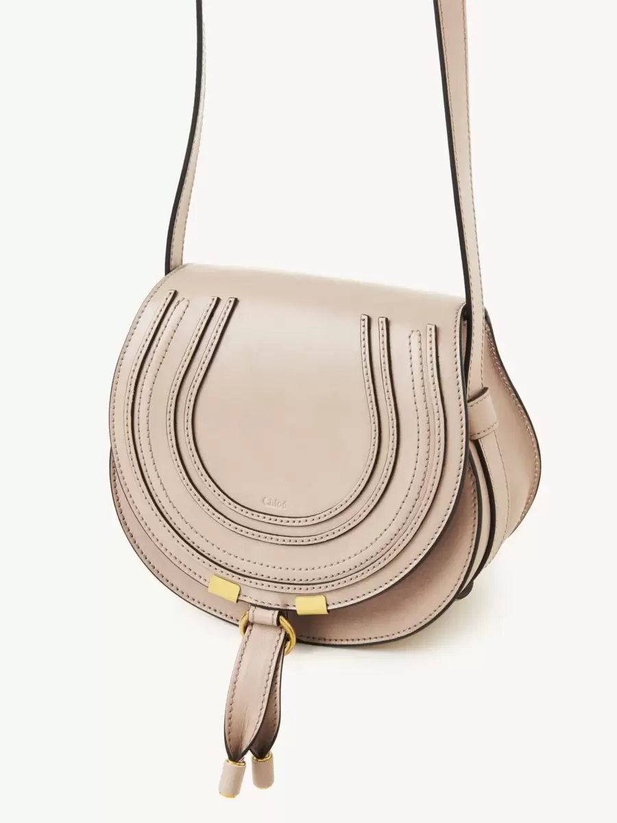 This small Marcie saddle bag is crafted from shiny calfskin with a rounded silhouette and a clean top-line. The flap features the line’s iconic saddle stitching, secured with signature dangling leather tassels.