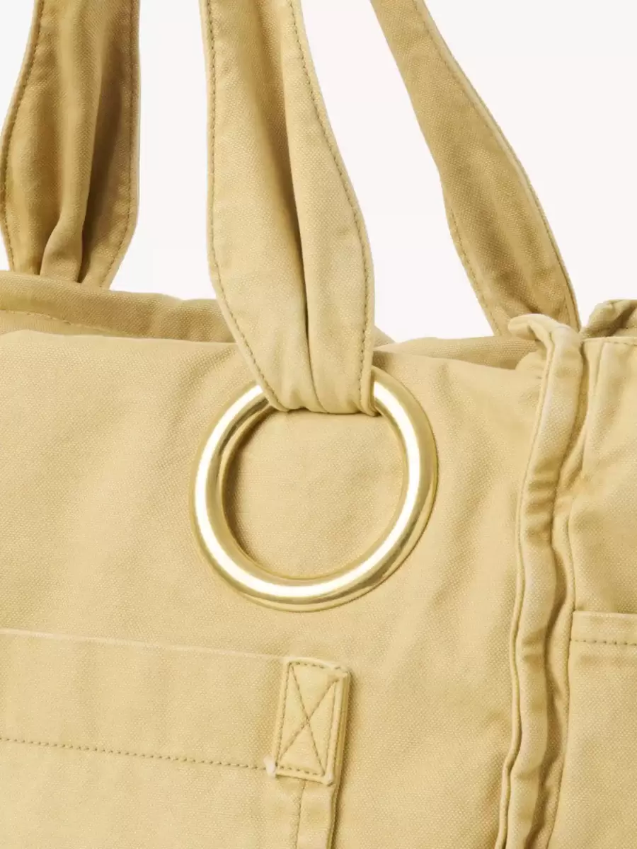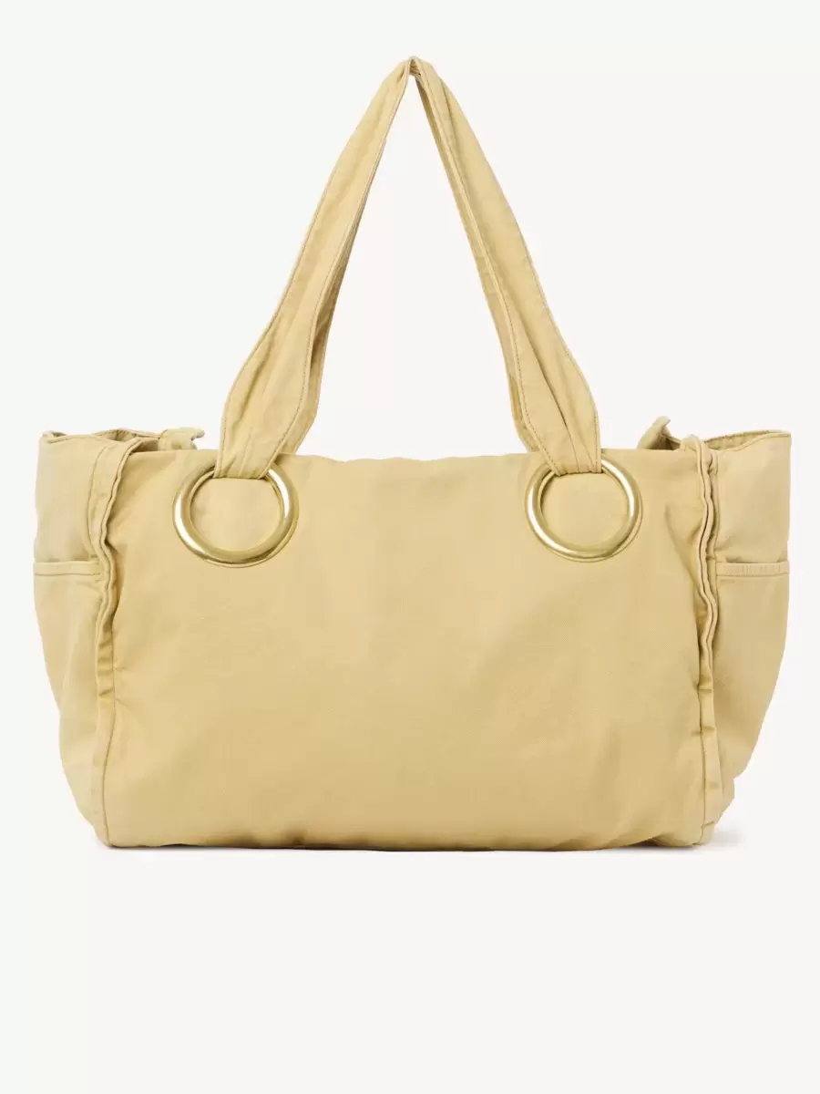 This large Chloé Plage tote bag is crafted from washed cotton with a faded finish. The roomy main compartment features multiple pockets, oversized gold-tone eyelets and a printed Chloé logo signature.