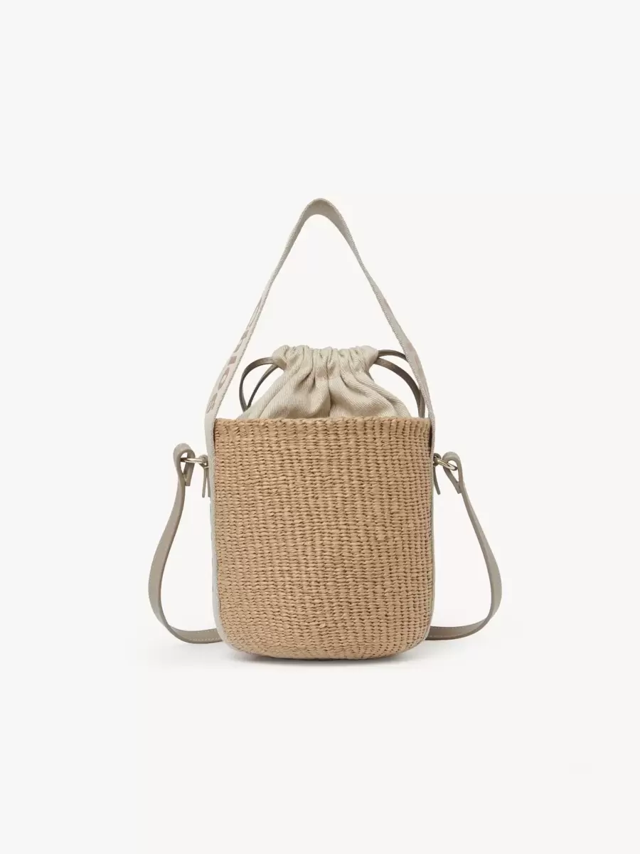 Small Woody basket bag in fair-trade paper, calfskin & polyester webbing with Chloé logo embroidery