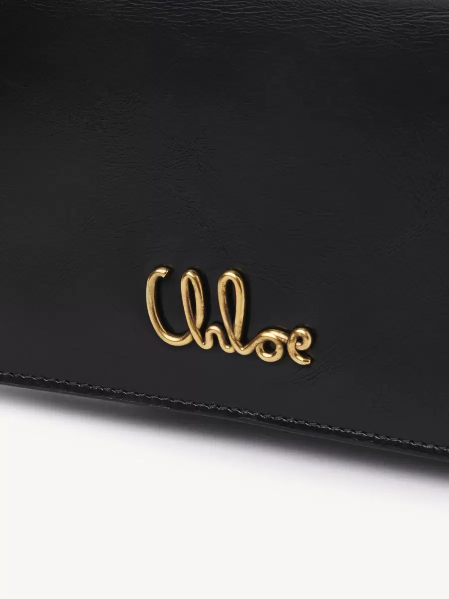 Crafted from shiny calfskin, the Chloé Iconic flap wallet on chain combines a minimalist silhouette with a metallic signature from the Maison’s archives.
