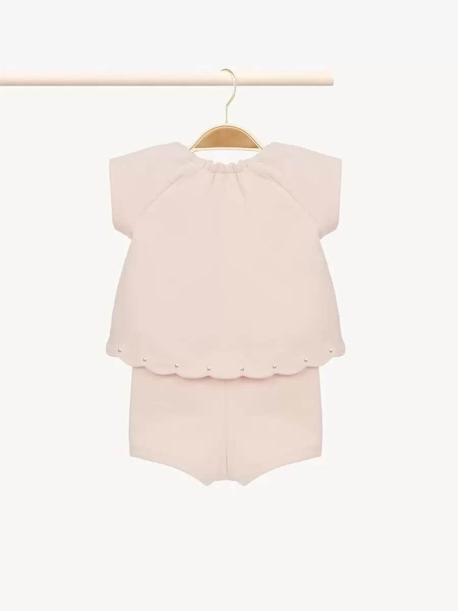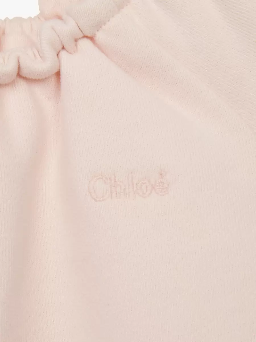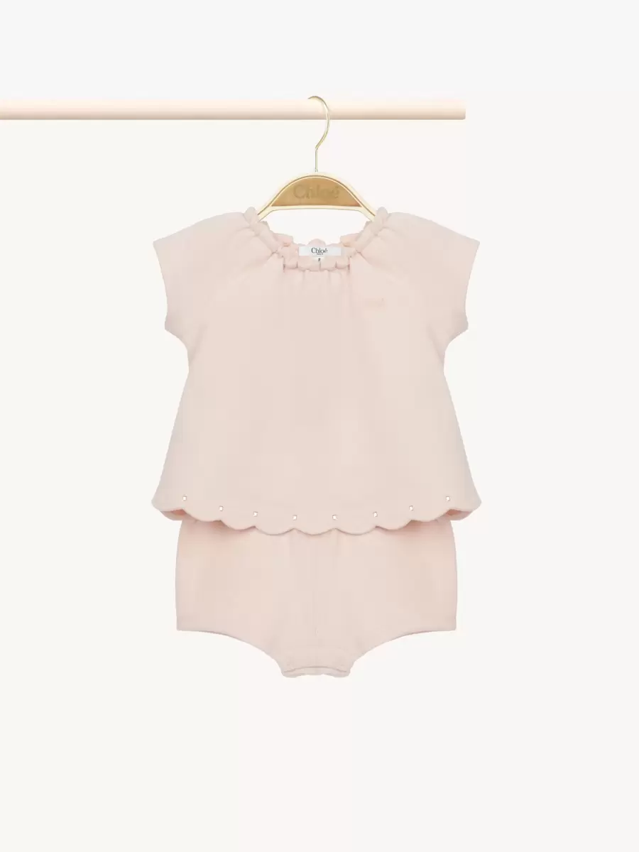Cut from organic cotton fleece, this baby romper combines an elasticated neck with a scalloped hem embellished with rhinestones. Tonal Chloé logo embroidery signs the chest.
