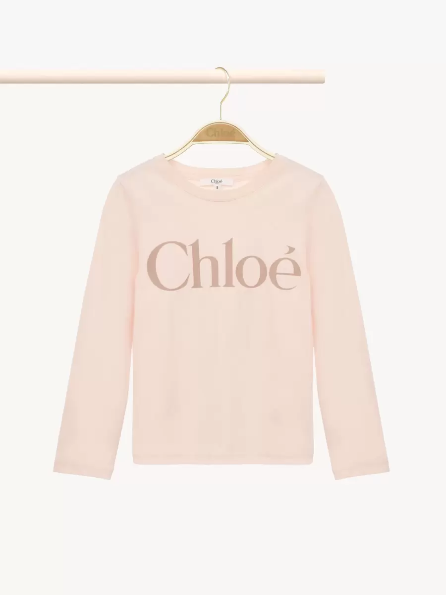 Made from organic cotton jersey, this long-sleeve top elevates a casual, round-neck silhouette with a contrast Chloé logo print at the chest.