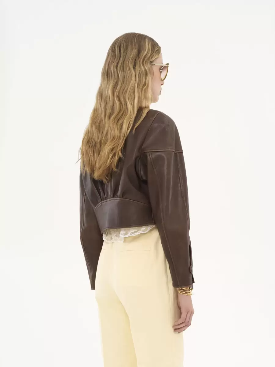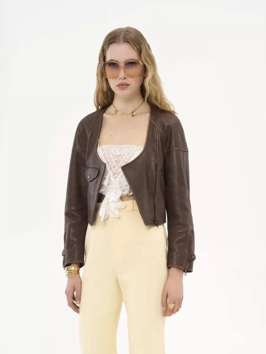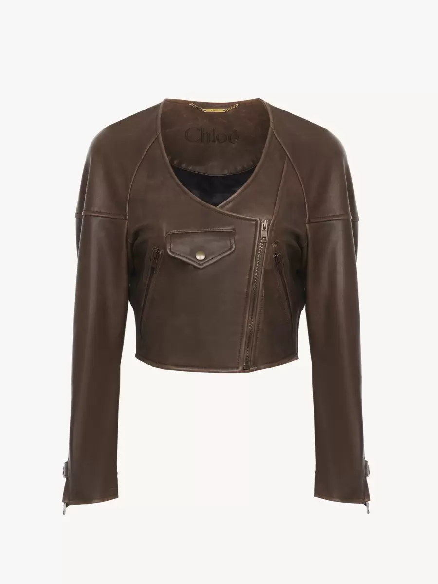 Be the first to review “Cropped scoop-neck jacket in leather”
