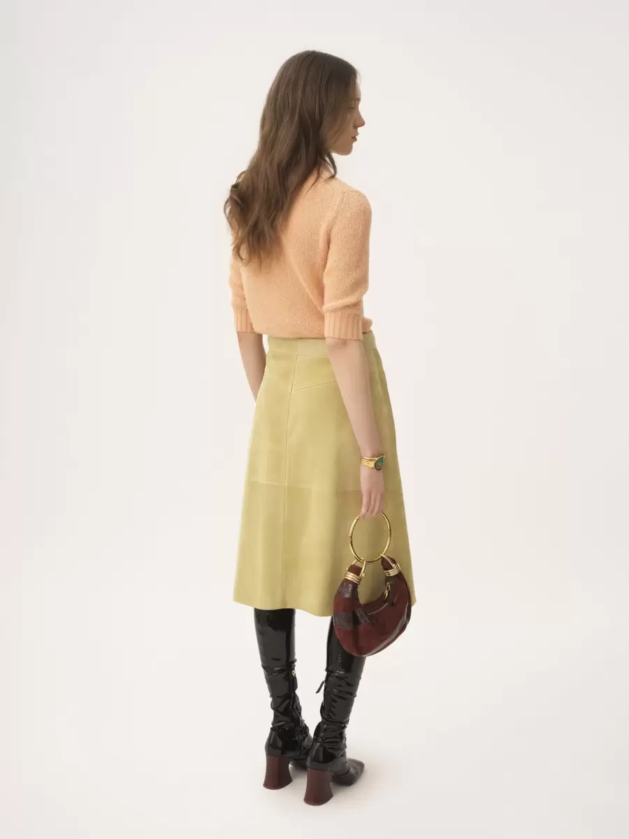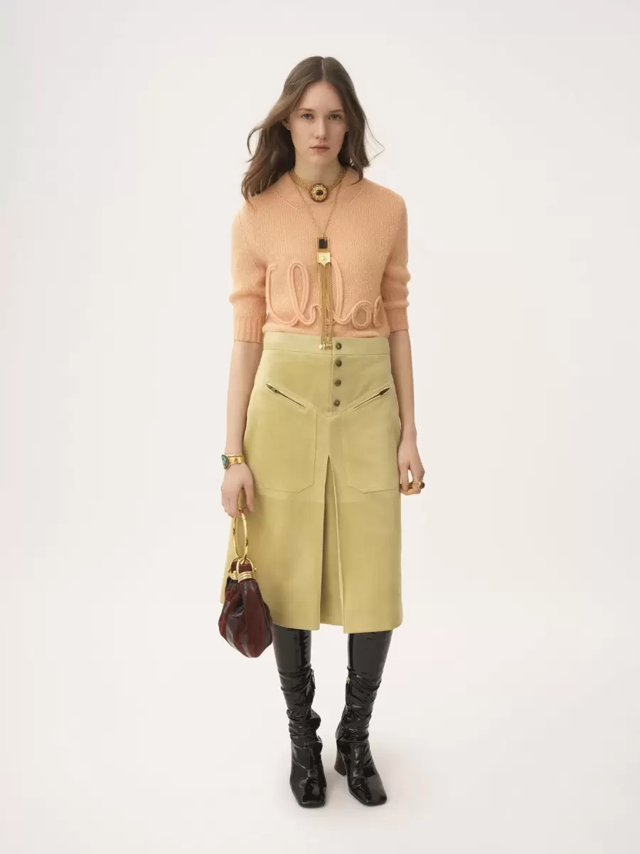 Crew-neck elbow-sleeve sweater in an alpaca wool and silk knit, detailed with ribbed trims and large Chloé logo embroidery at the front.