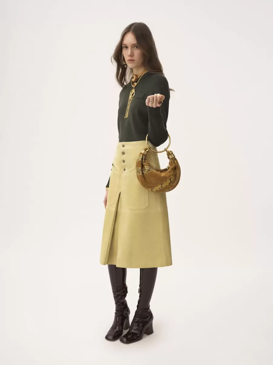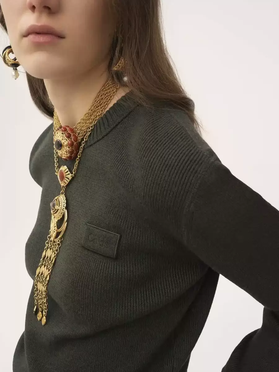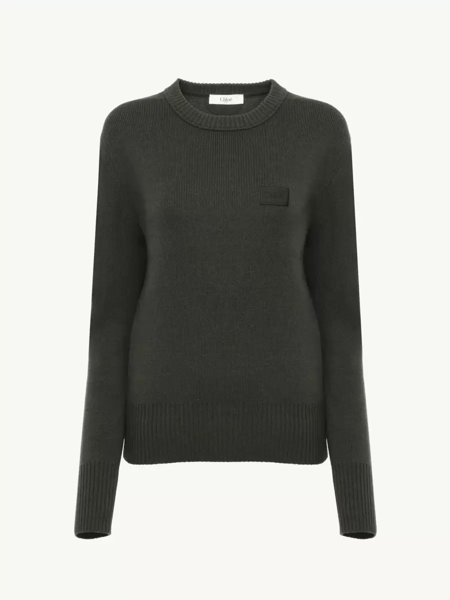 Crew-neck sweater in a merino wool knit, detailed with ribbed trims and a subtle Chloé logo patch at the chest.