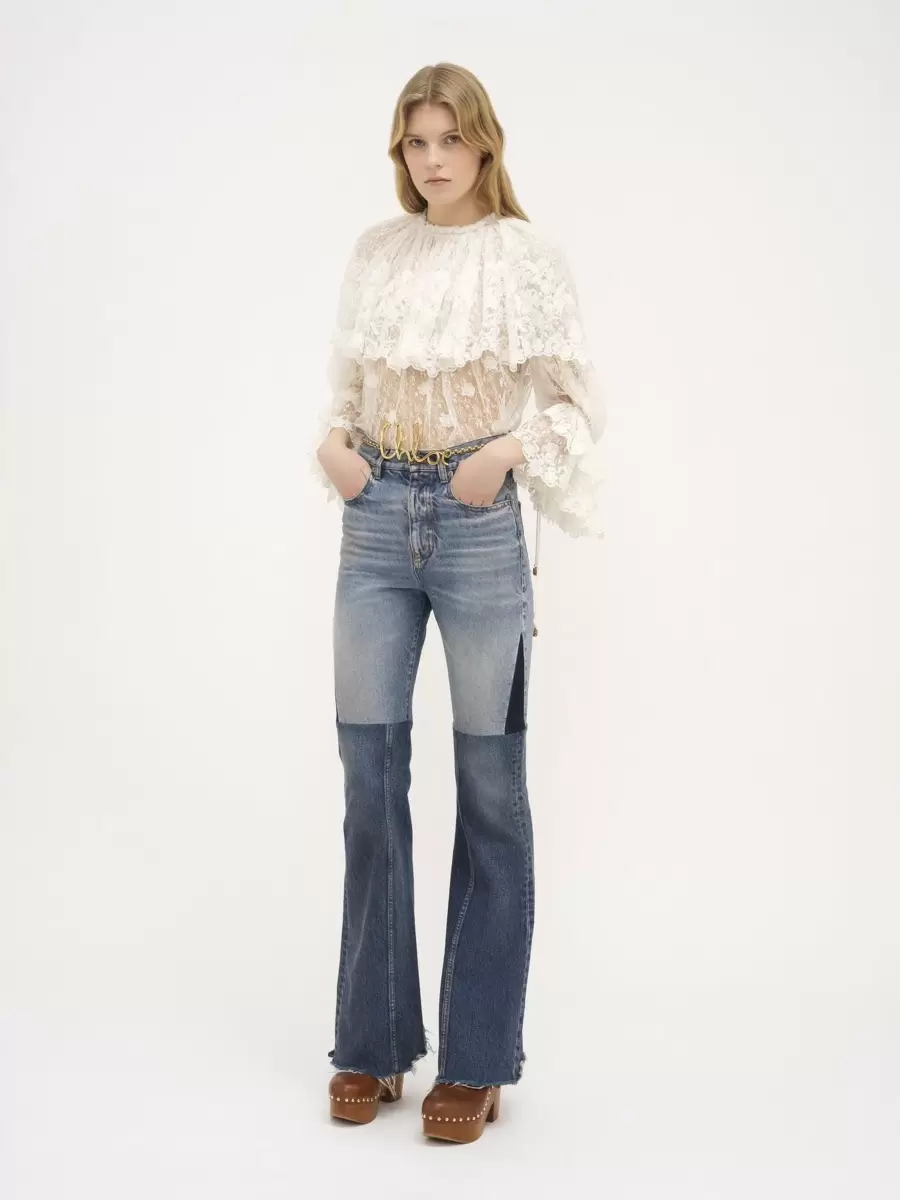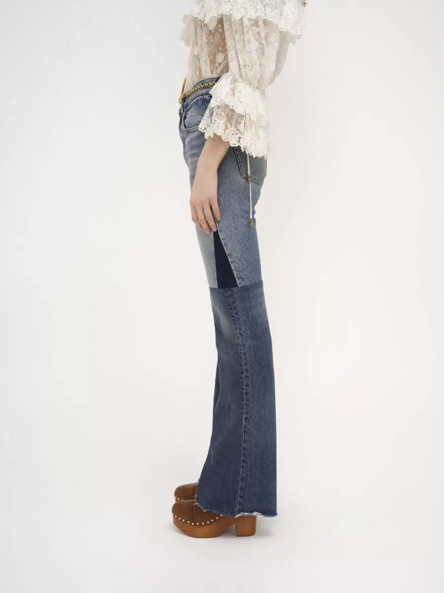 Flared patchwork jeans outer shell: 100% Cotton