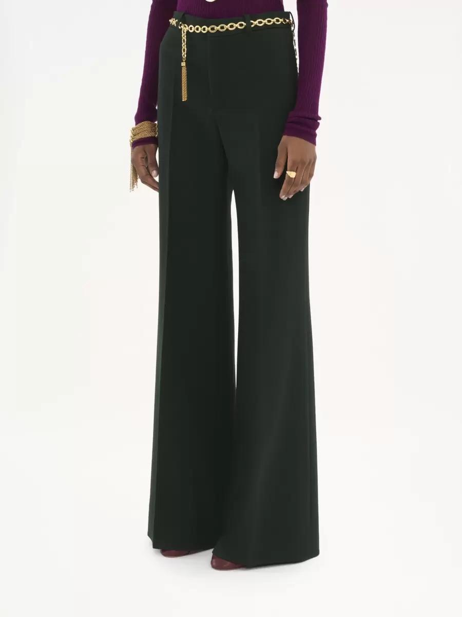 Flared tailored pants in lower-impact wool crêpe with pressed creases.