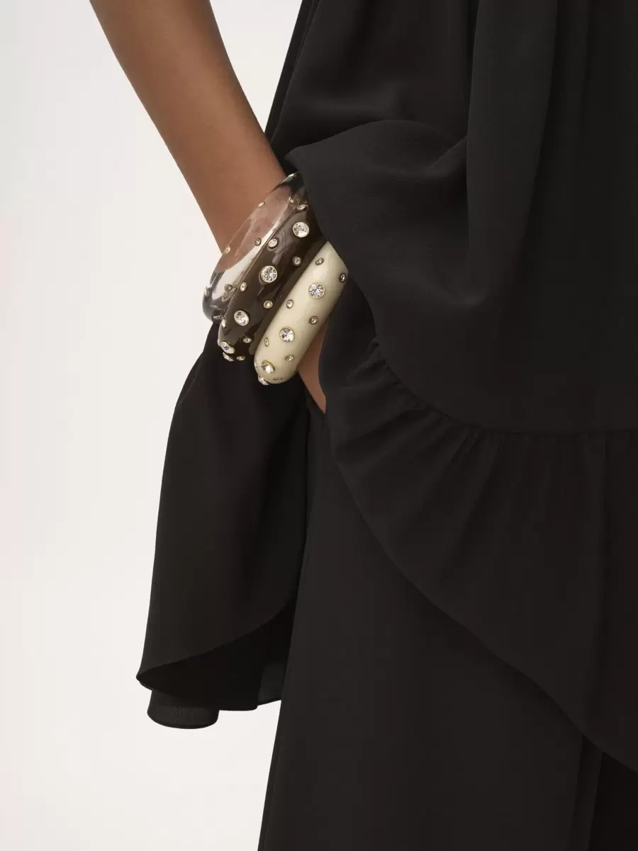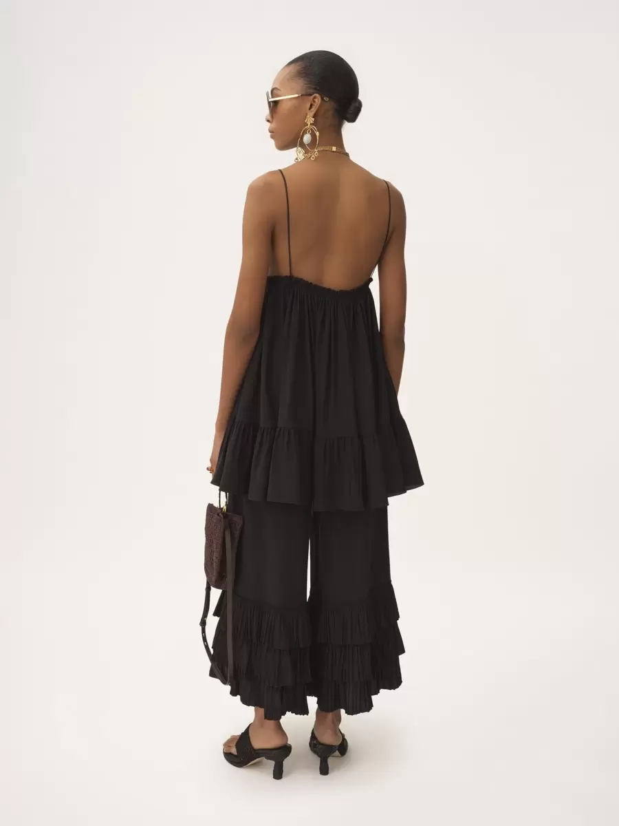 Fluid wide-leg pants in organic silk crêpe de chine with a tiered, ruffled hem.
