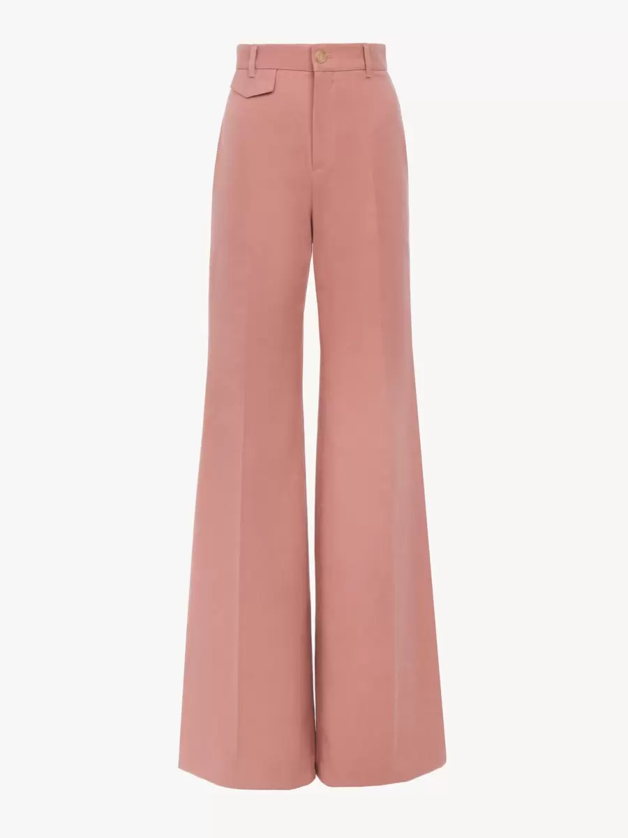 High-rise flared pants in garment-dyed organic cotton canvas, detailed with a mini flap pocket at the hip.