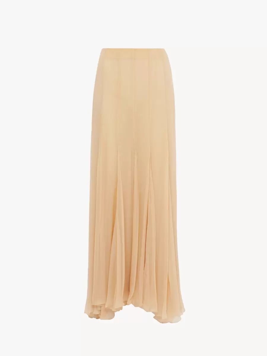 Gathered fluid maxi skirt in organic silk mousseline with a silk-mix lining, detailed with flounces.