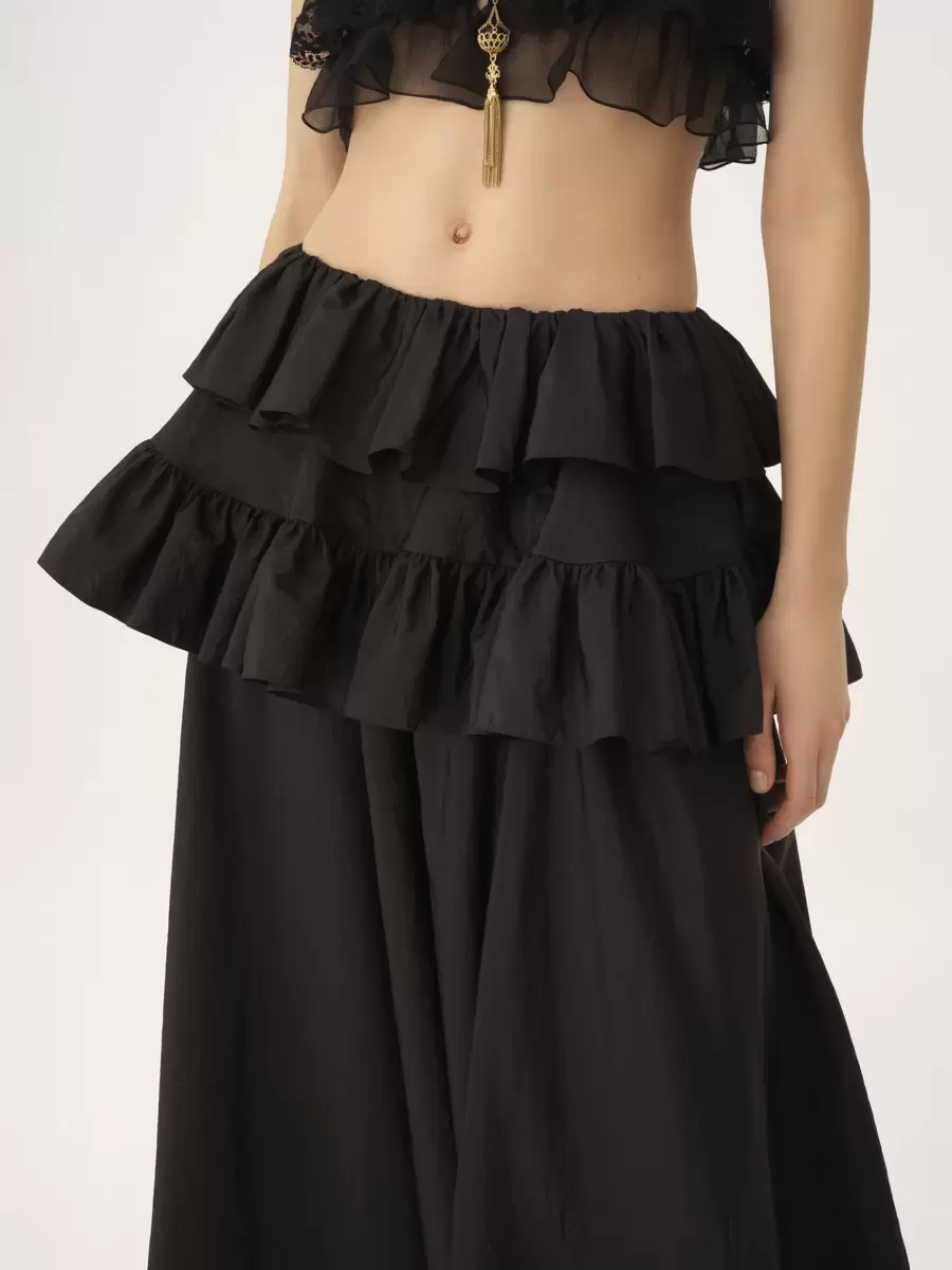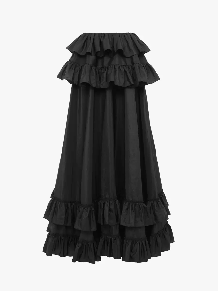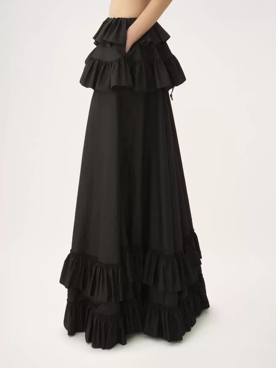 Tiered maxi skirt in washed light silk taffeta with a silk-mix lining, featuring generous ruffles.
