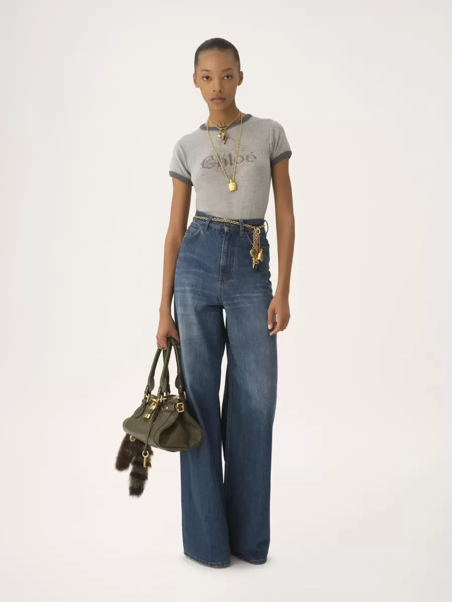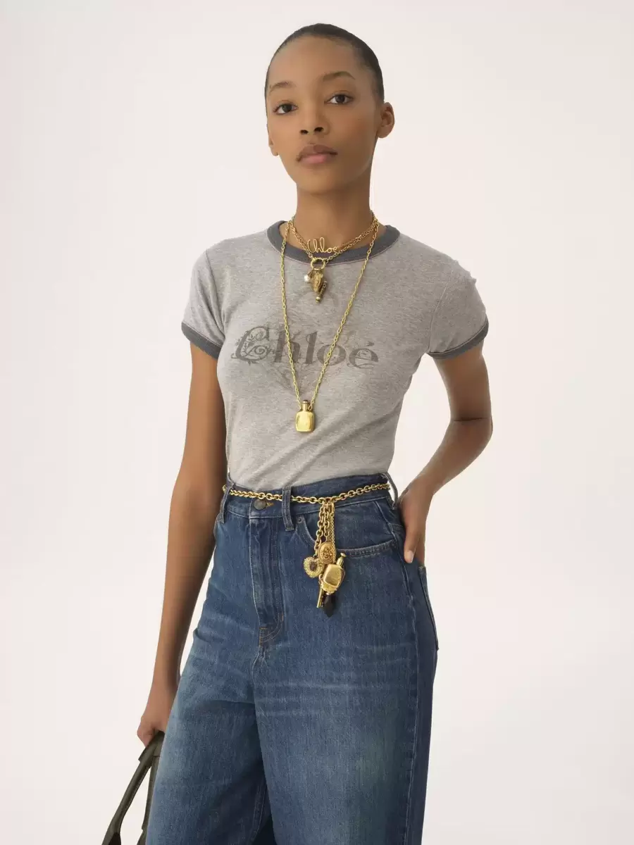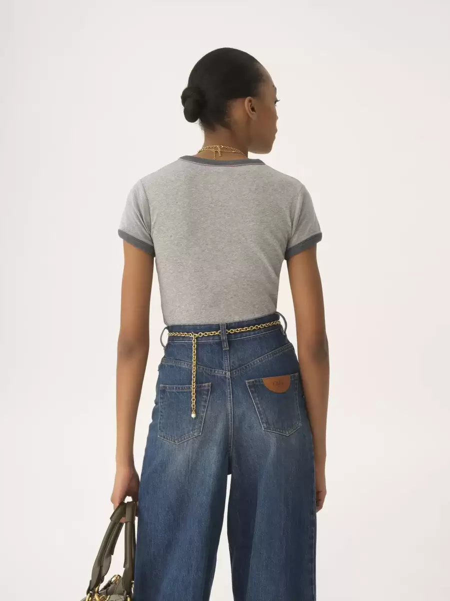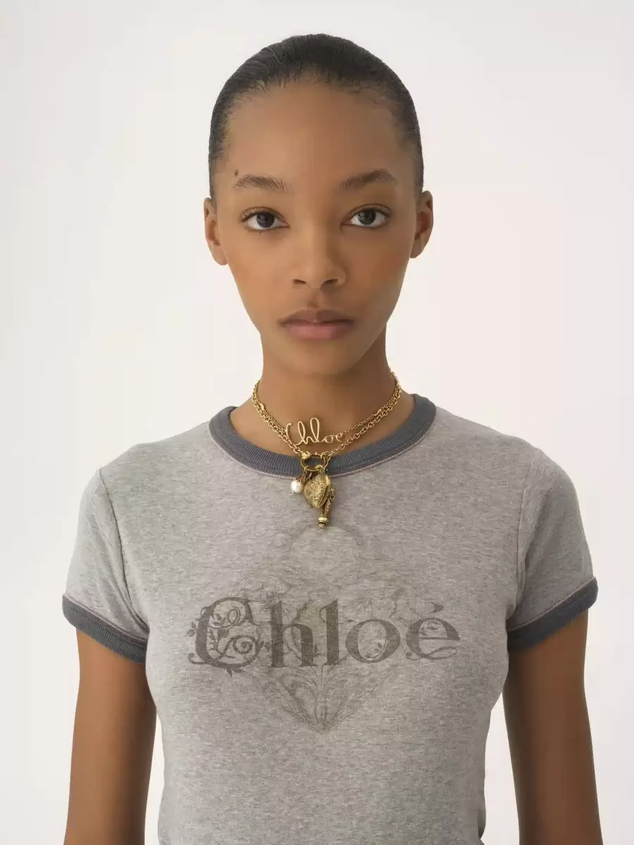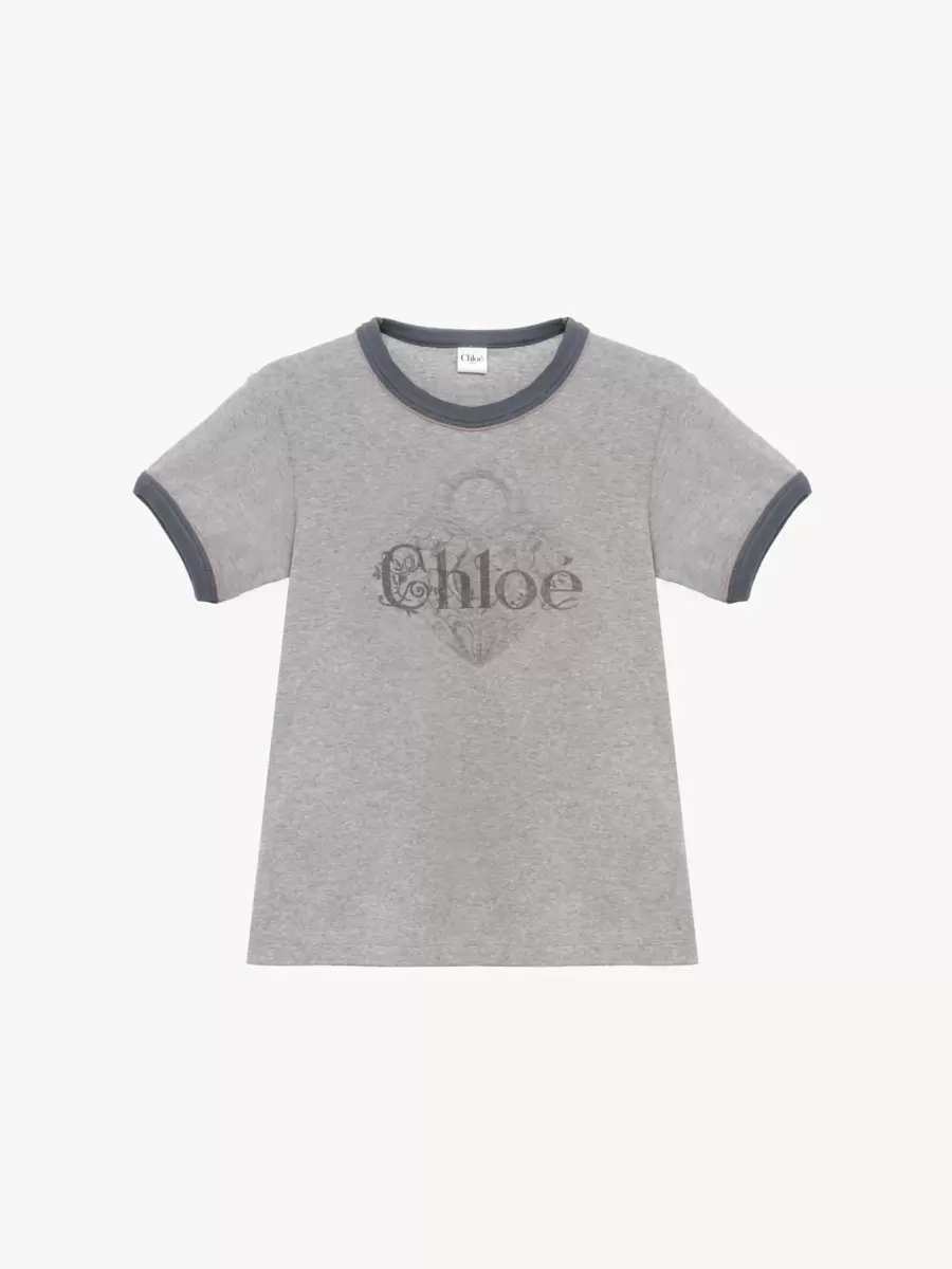 Crew-neck baby fit T-shirt in chiné jersey with a faded heart-lock and Chloé logo print, finished with contrast trims.