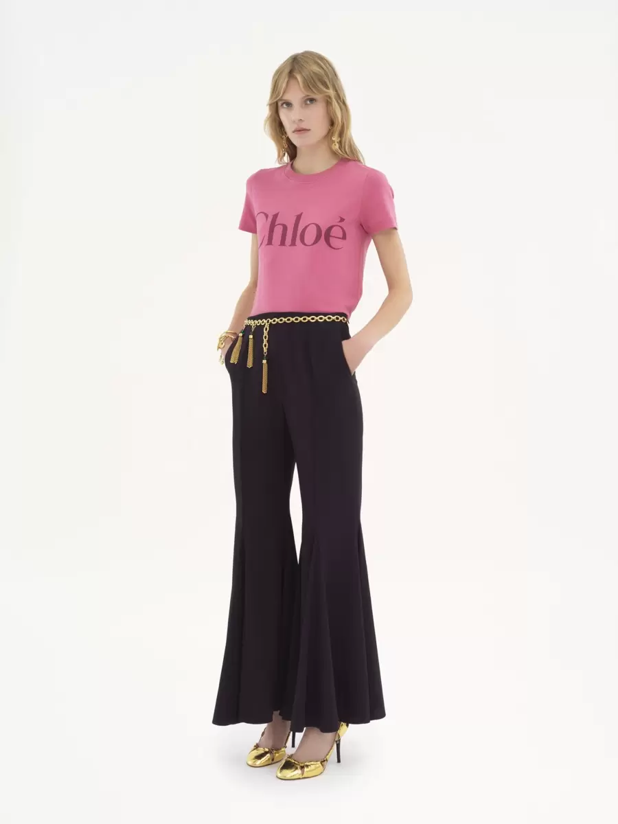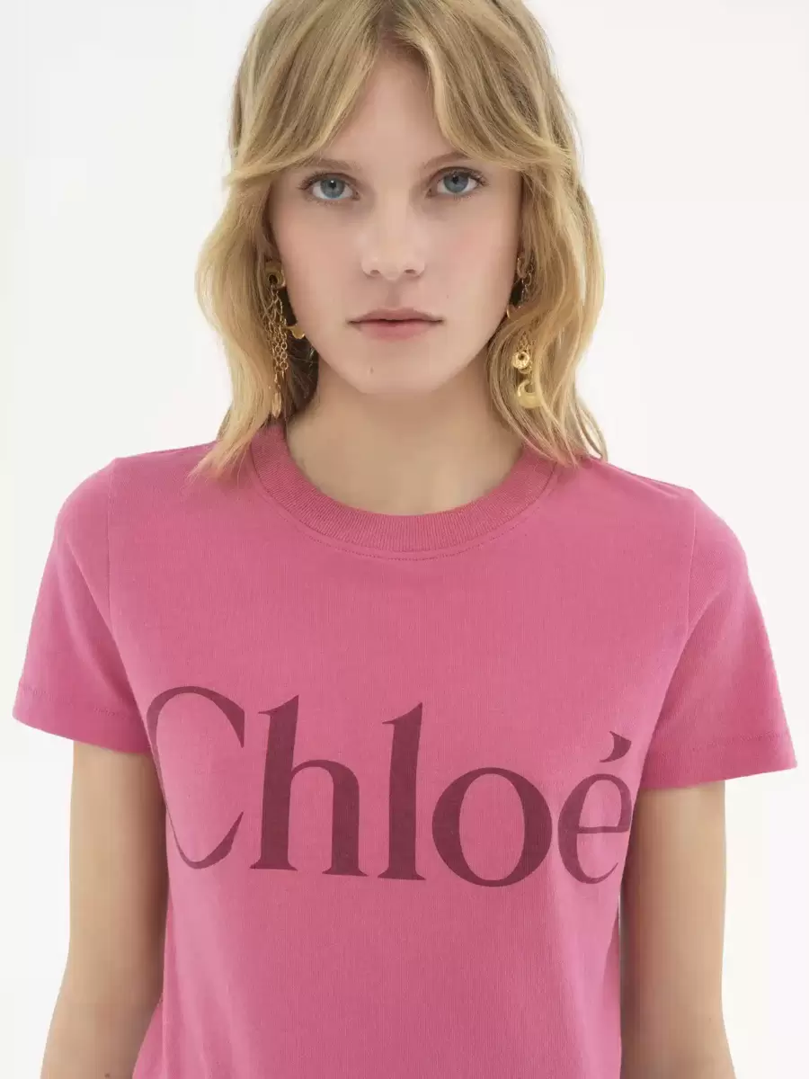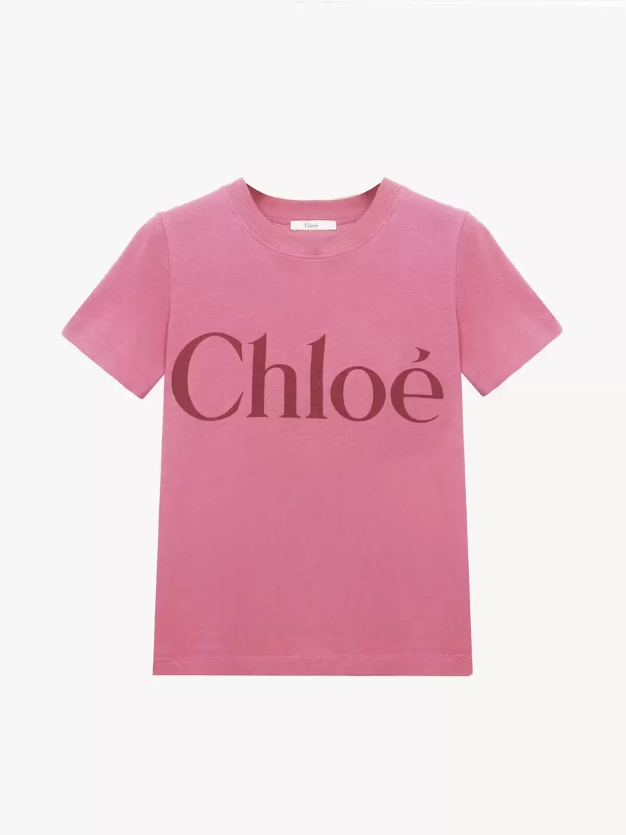 Crew-neck baby fit T-shirt in light washed organic cotton jersey, featuring a contrast Chloé logo print at the front.