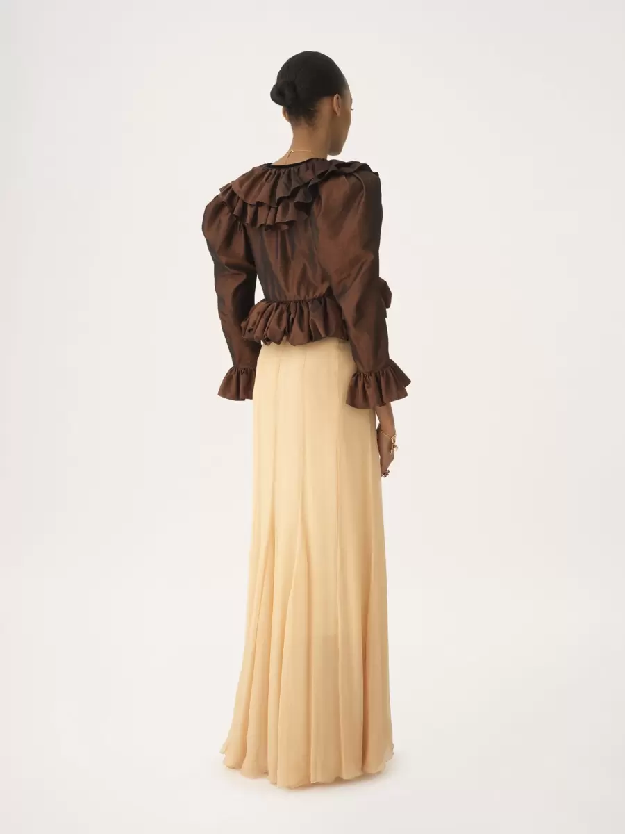 Be the first to review “Cropped V-neck ruffle top in washed silk taffeta”