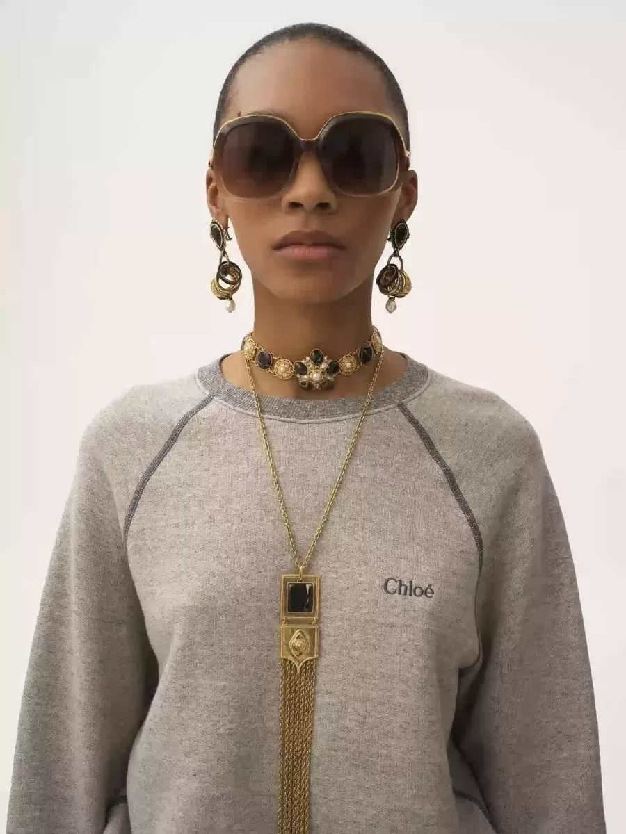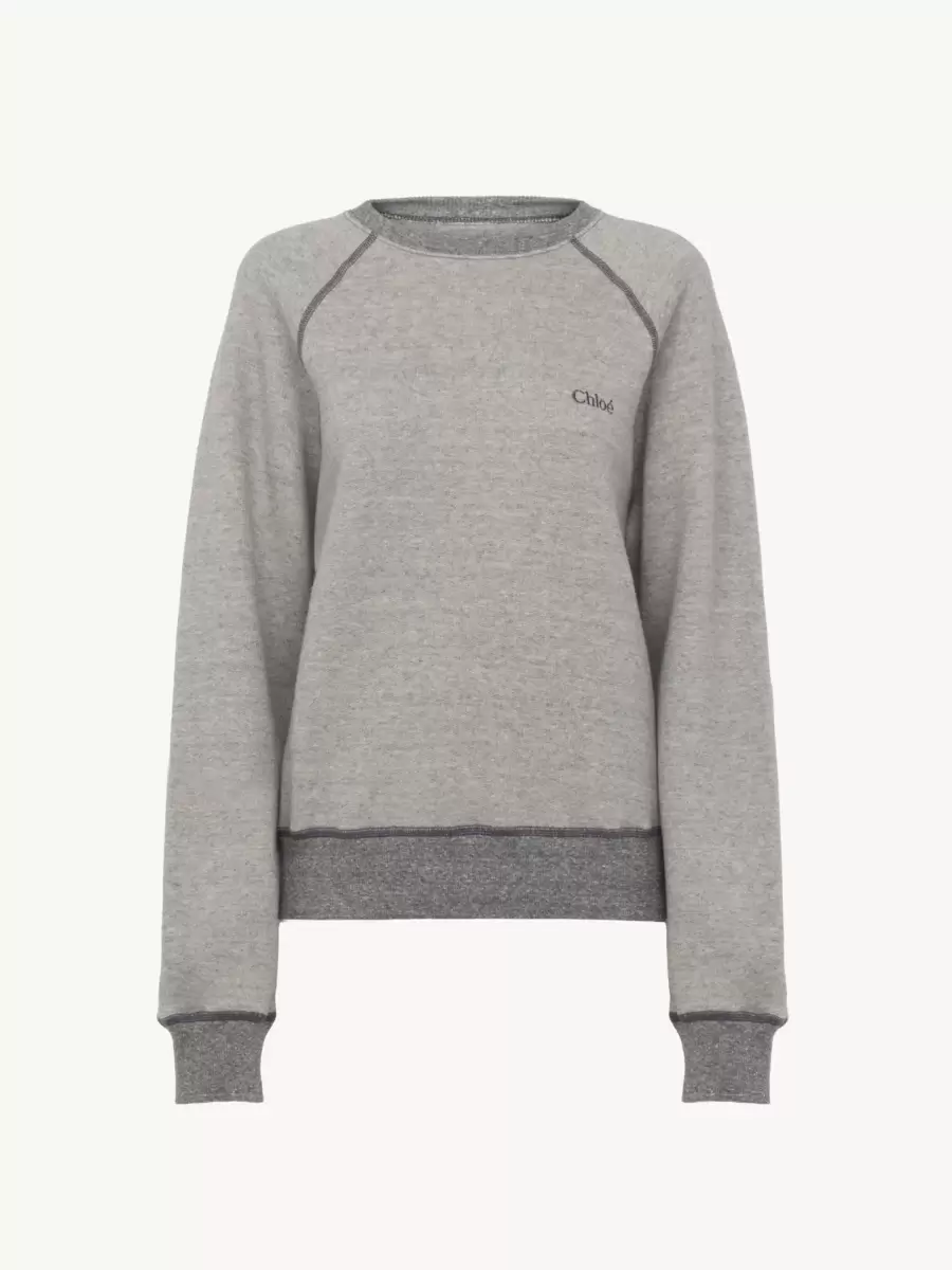Crew-neck sweater in a chiné cotton fleece mix, detailed with contrast ribbed trims and a subtle Chloé logo at the chest.