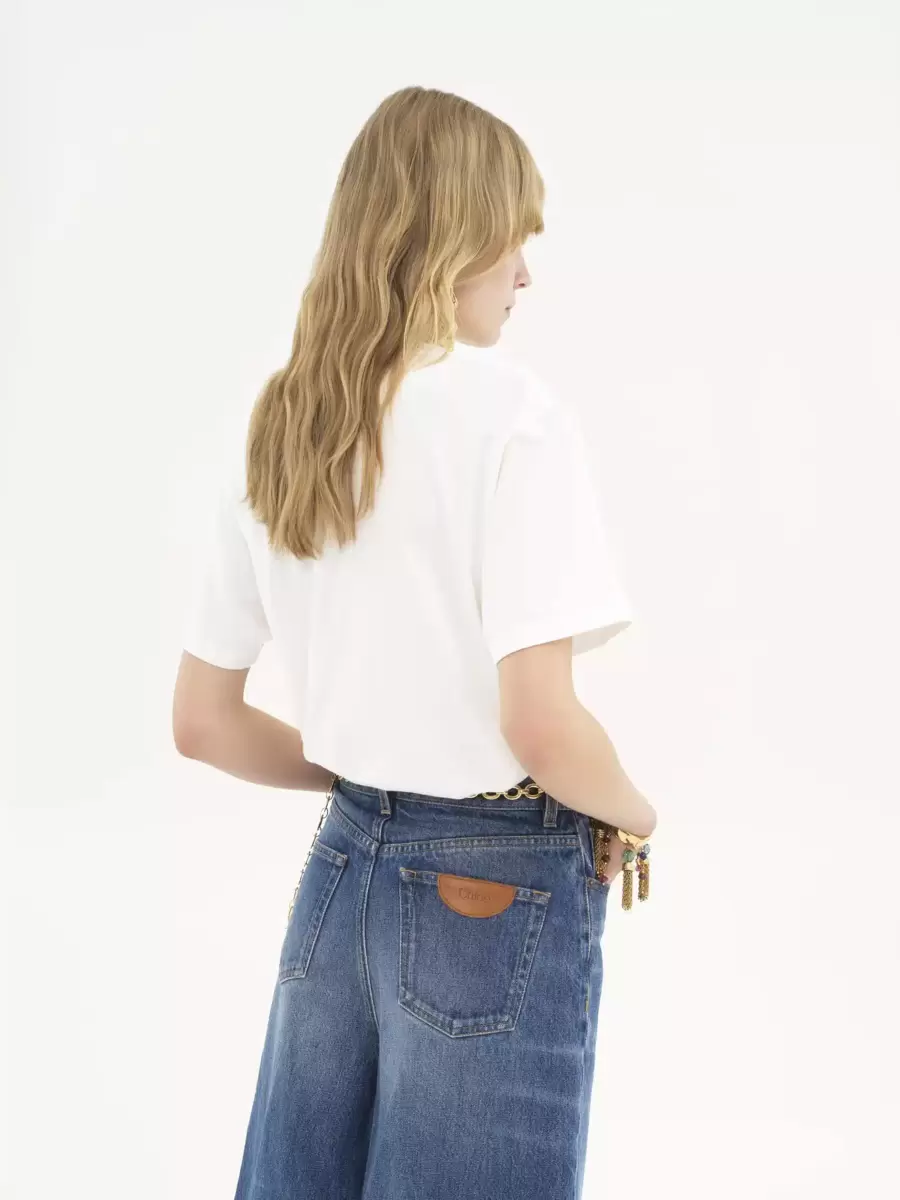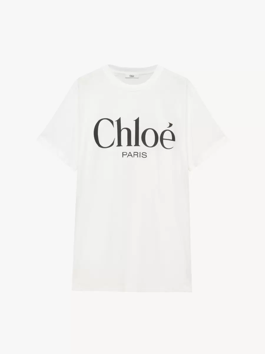 Crew-neck oversized T-shirt in light washed cotton jersey, featuring a contrast Chloé Paris logo print at the front.